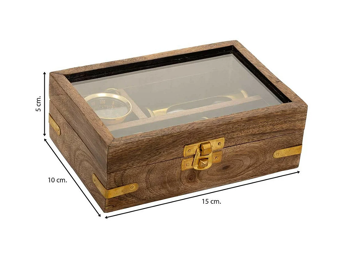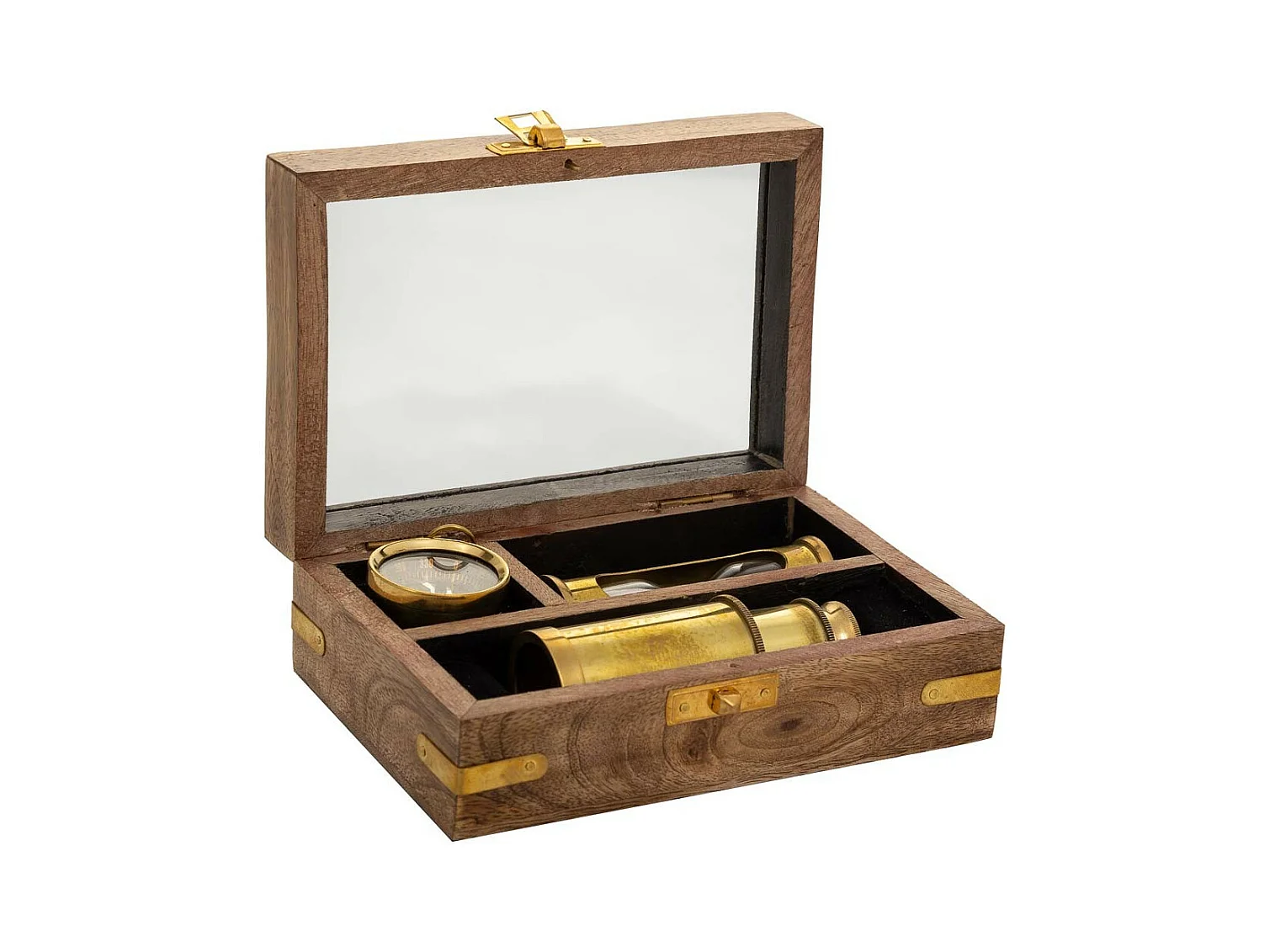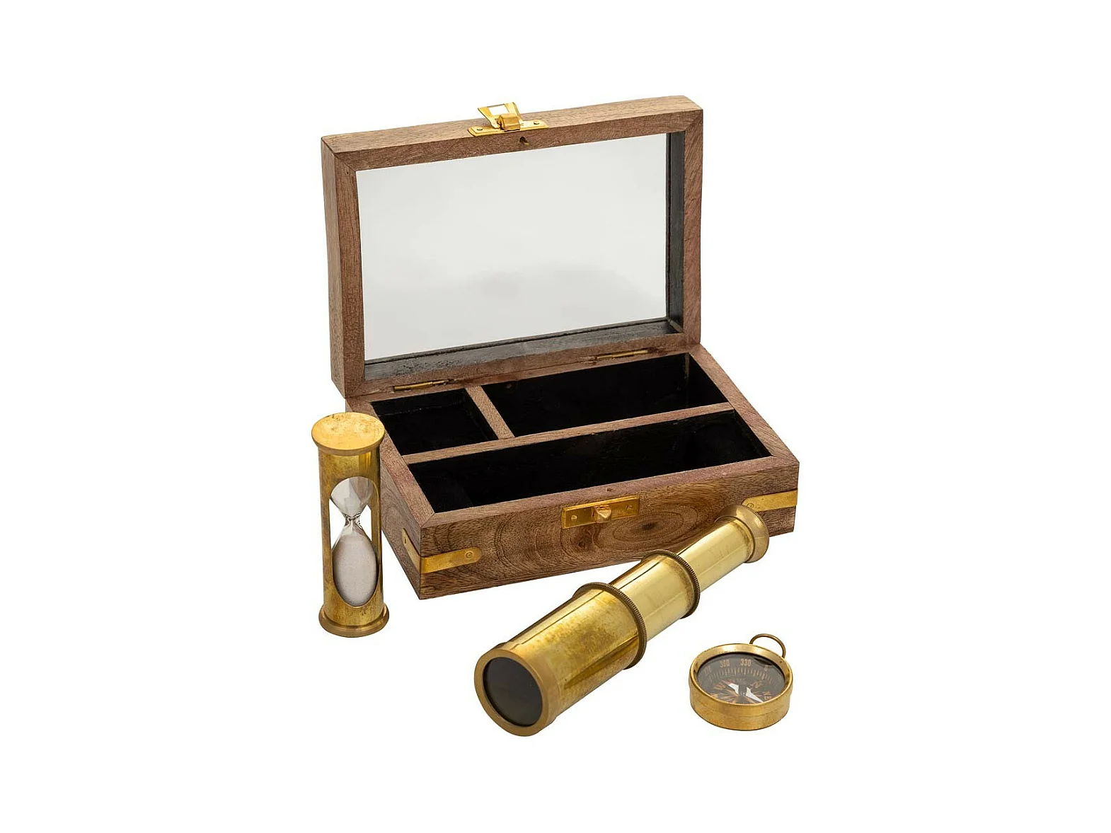 Conjunto bússola, telescópio e ampulheta 15x10x5