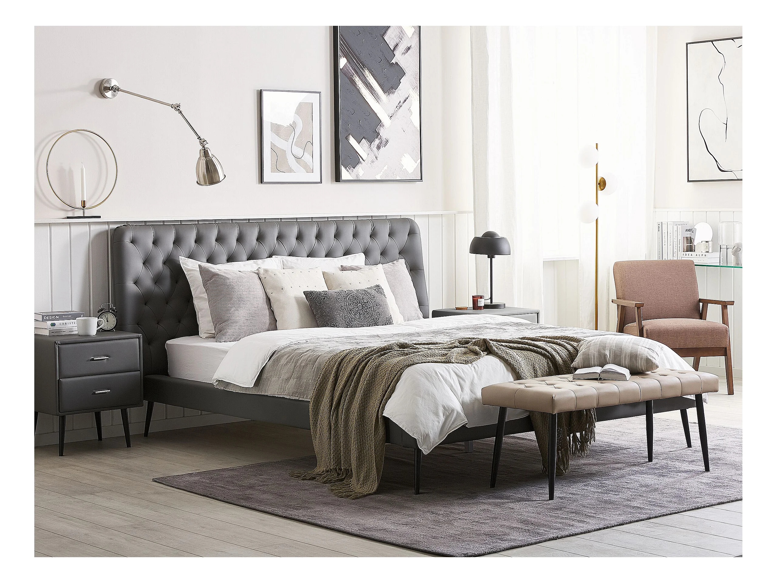 Conjunto de quarto de dormir Pele sintética ESSONNE 180 x 200 cm Cinzento
