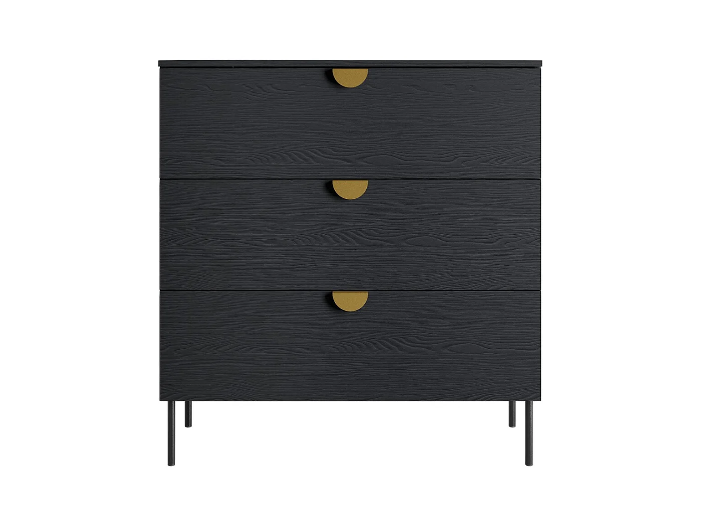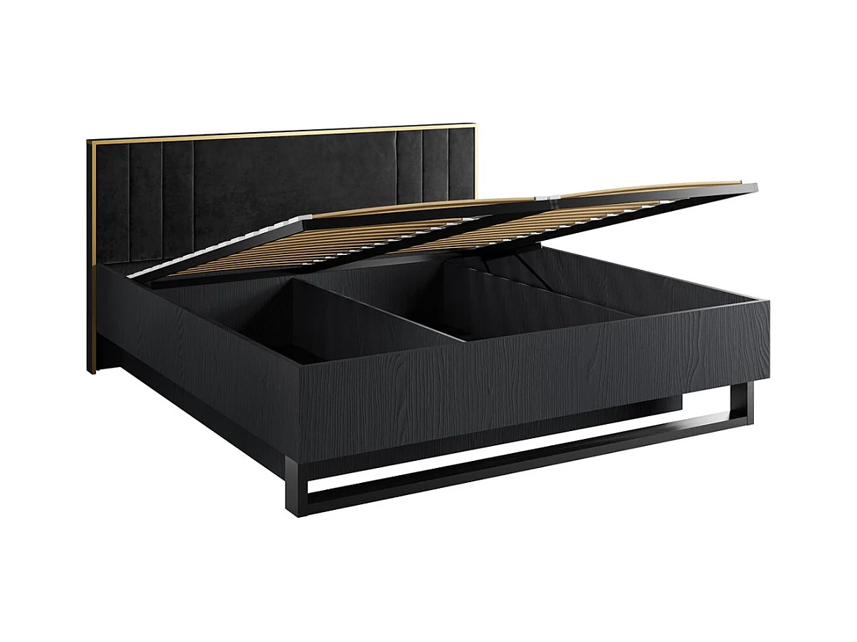 Quarto completo MONDO – Preto estruturado e dourado – Cama 180x200 com estrado + Guarda-roupa + Cômoda + 2 criados-mudos