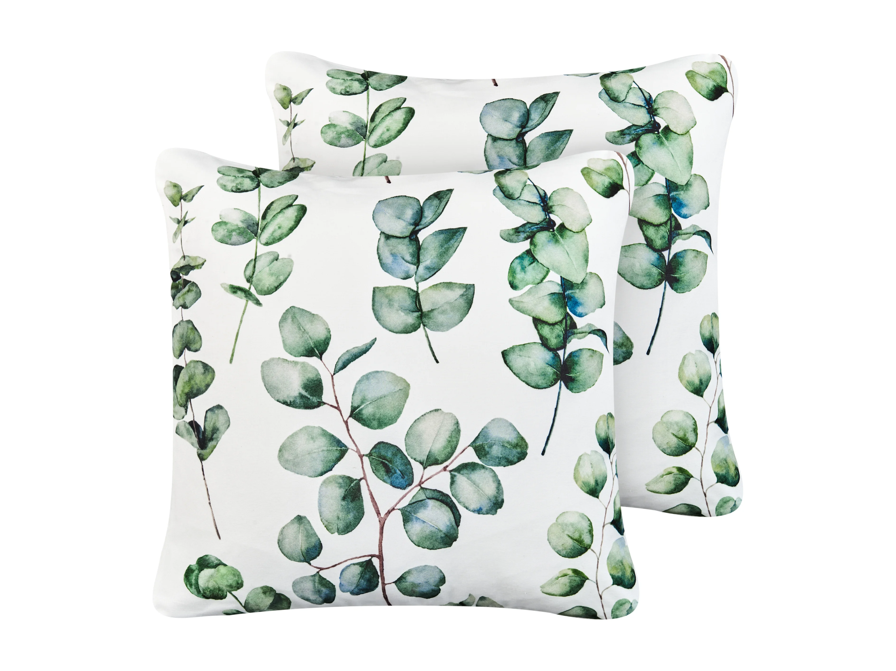 Conjunto de 2 almofadas decorativas MICROSORUM 45 x 45 cm Verde claro Padrão de plantas