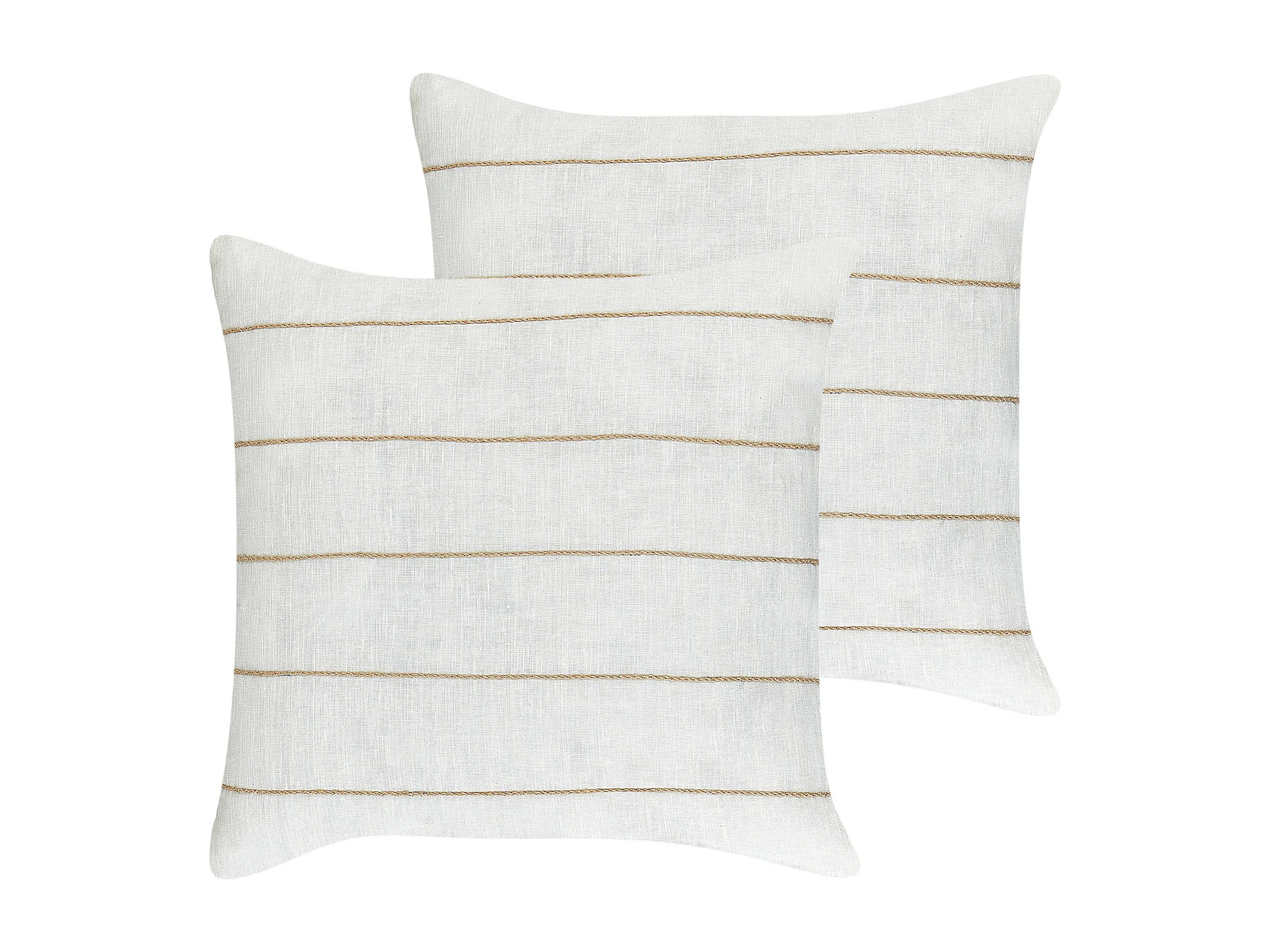 Conjunto de 2 almofadas decorativas MILAS Linho 50 x 50 cm Branco Às riscas