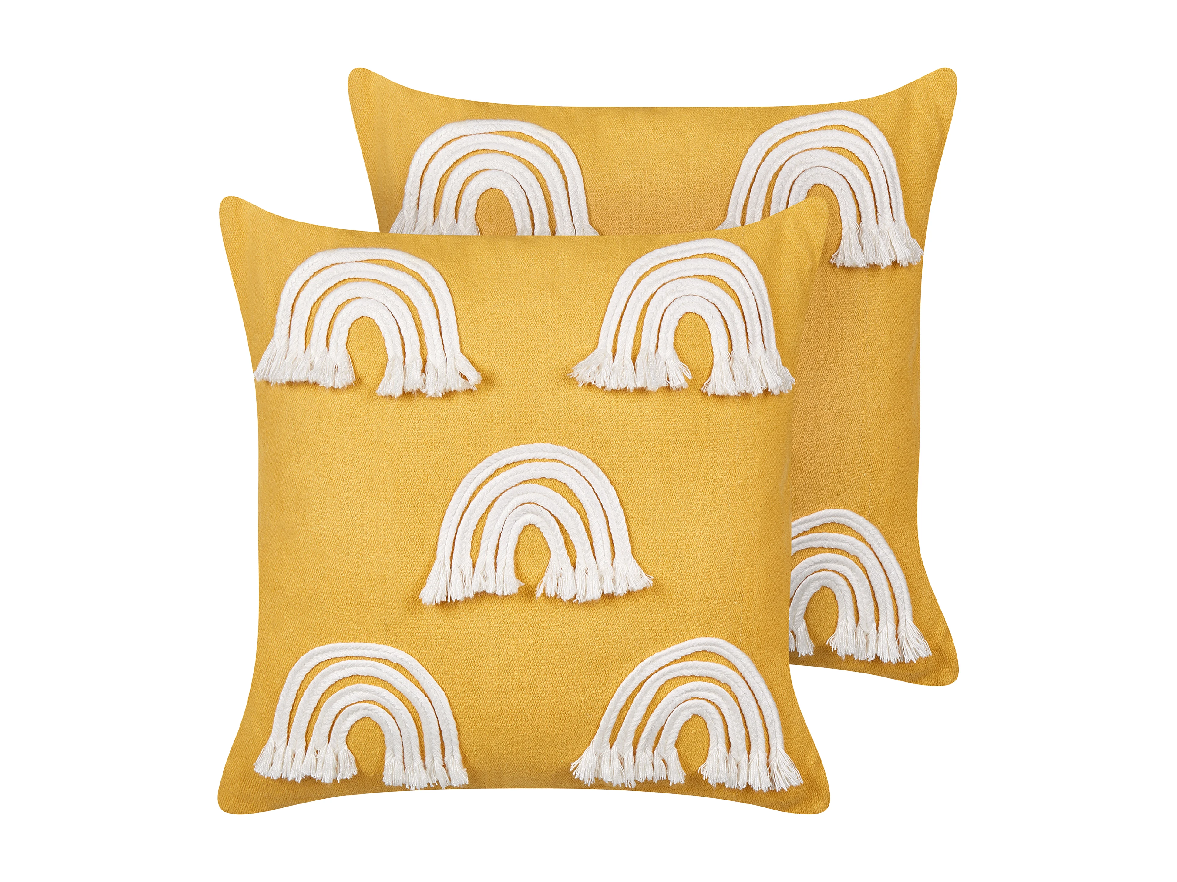 Conjunto de 2 almofadas decorativas com bordado de arco-íris em algodão amarelo 45 x 45 cm LEEA