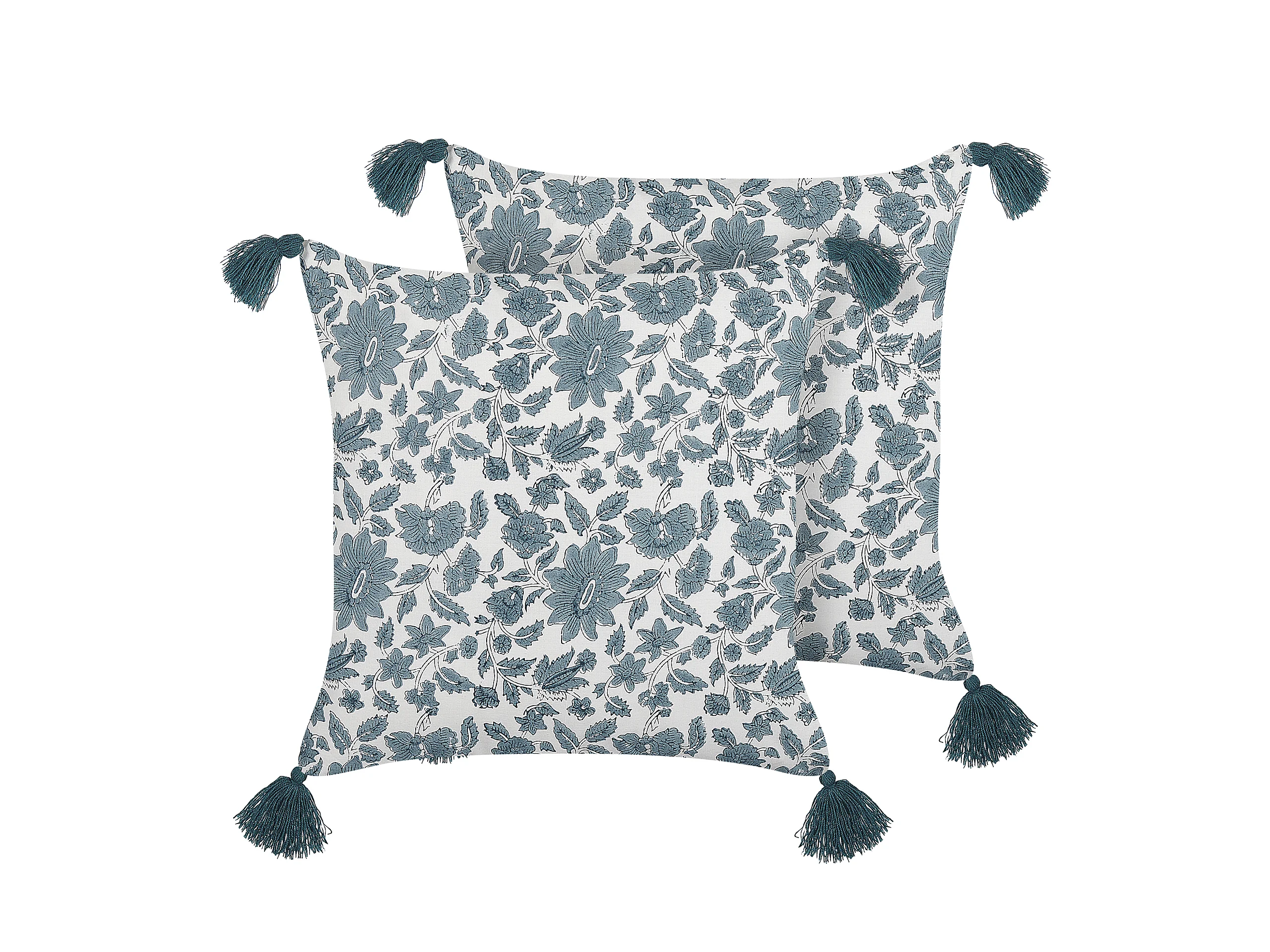 Conjunto de 2 almofadas decorativas AMOENA Algodão 45 x 45 cm Azul Padrão floral