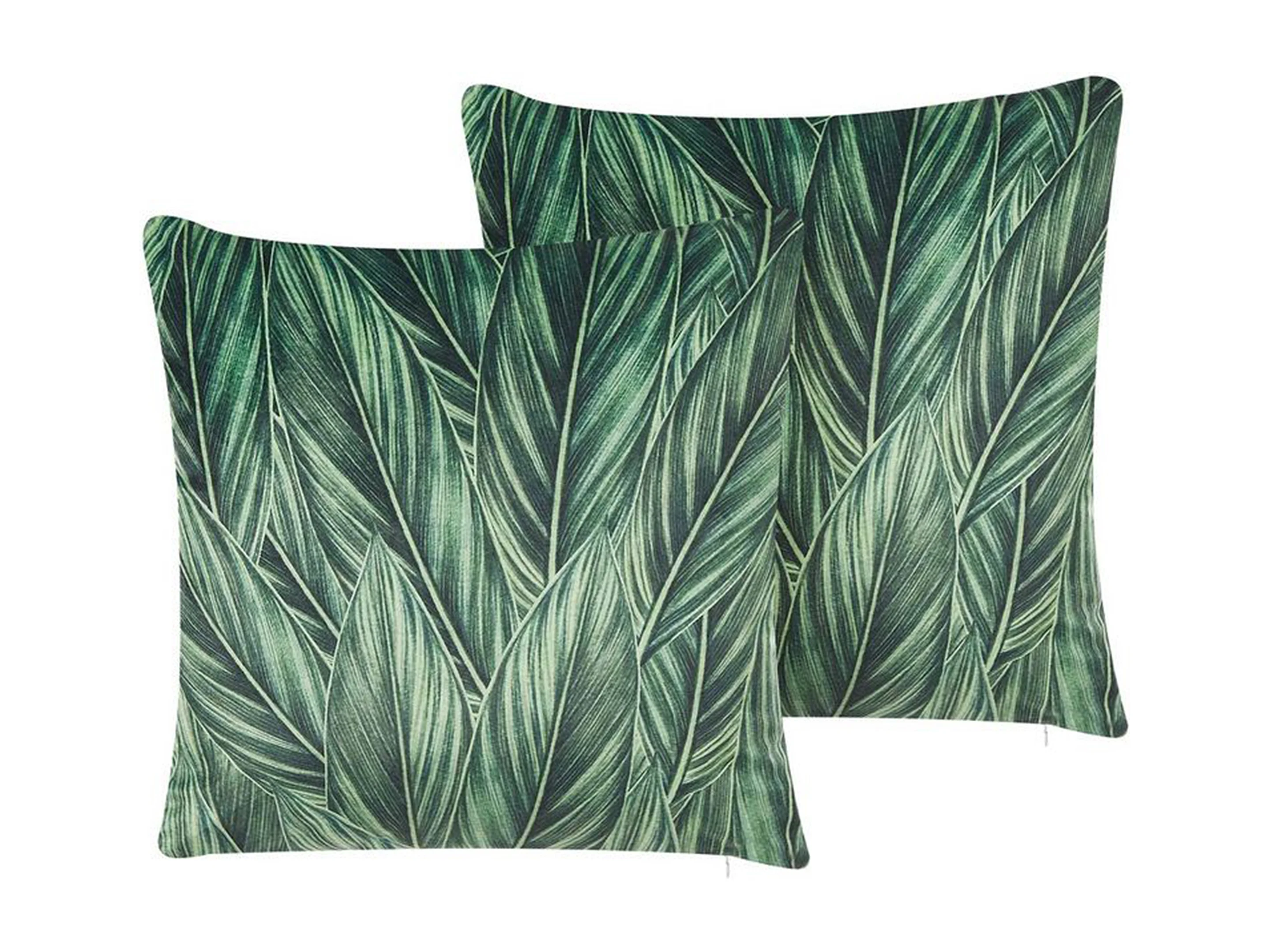 Conjunto de 2 almofadas decorativas DIASCIA Veludo 45 x 45 cm Verde Padrão de plantas