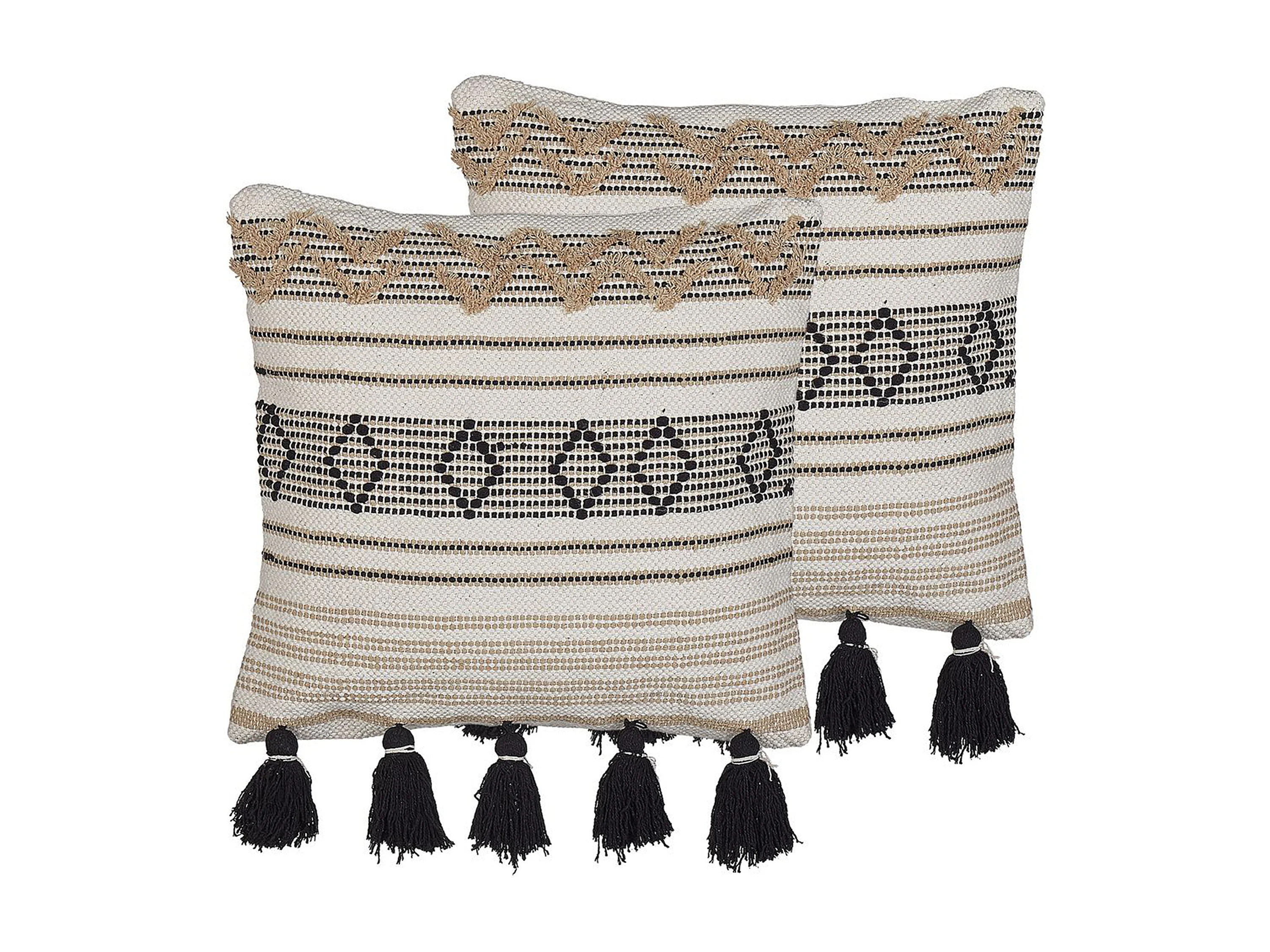 Conjunto de 2 almofadas decorativas MYRTUS Algodão 45 x 45 cm Creme Padrão geométrico