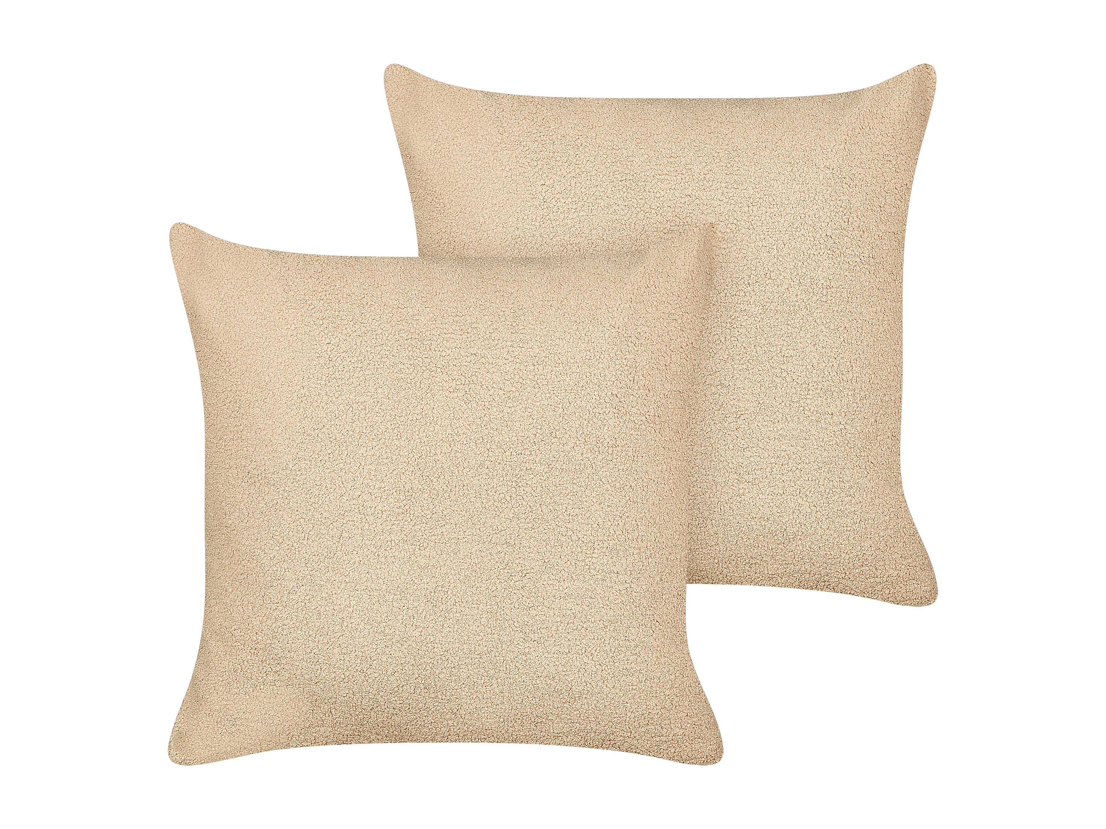 Conjunto de 2 almofadas decorativas LEUZEA Bouclé 60 x 60 cm Cor de areia Sólido