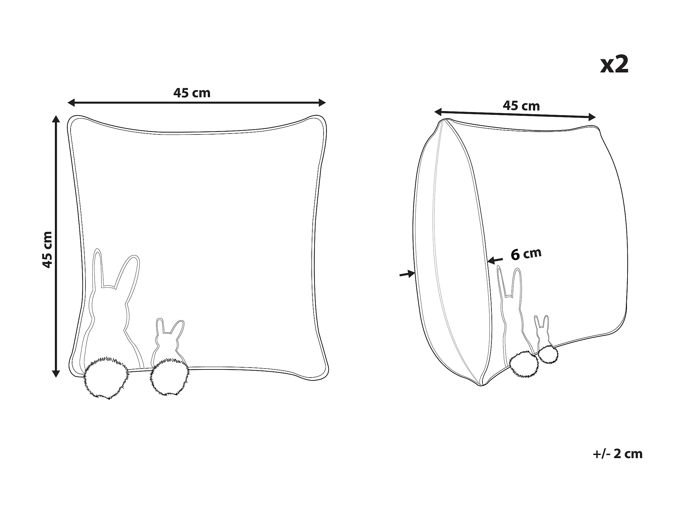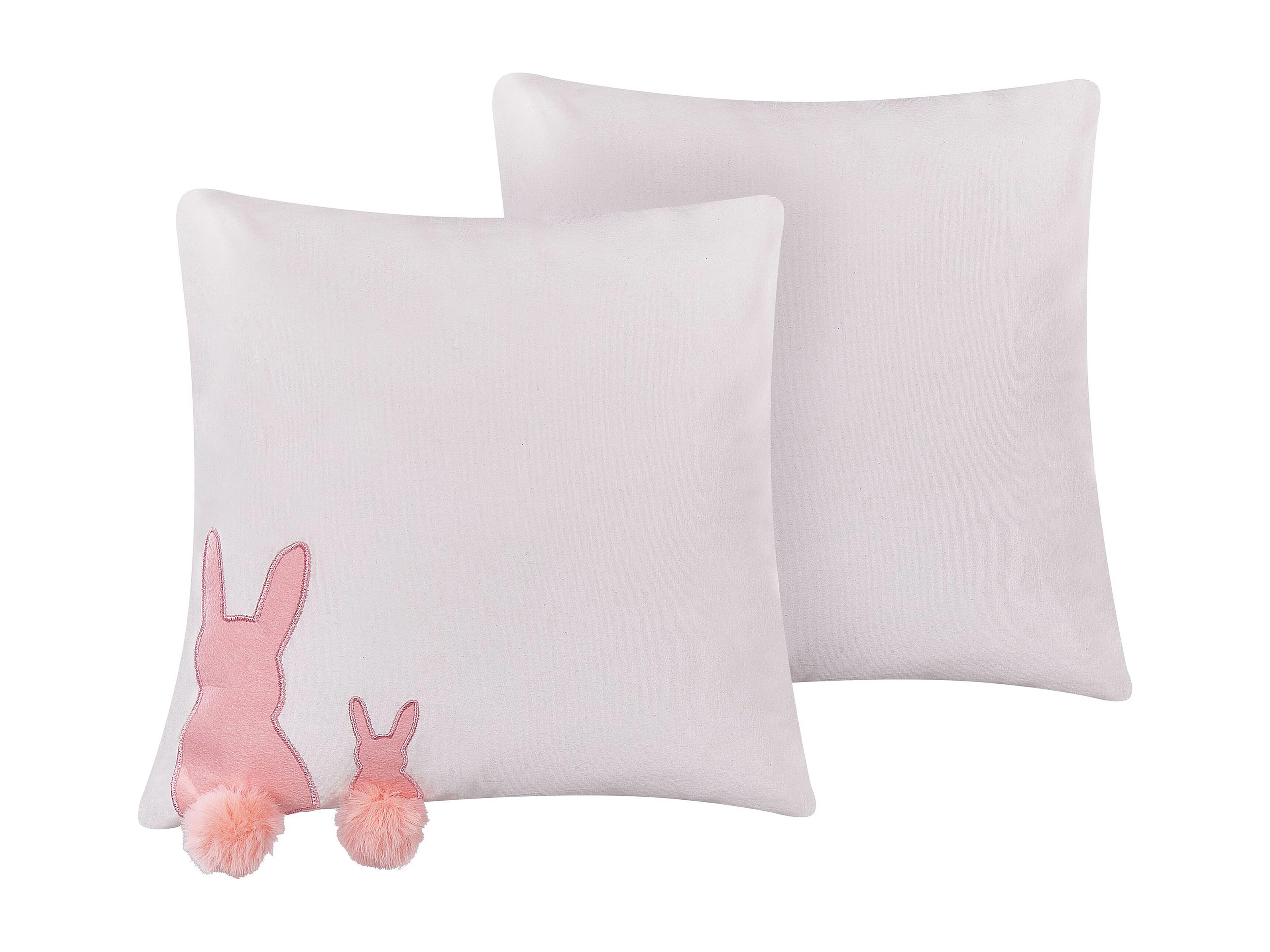 Conjunto de 2 almofadas decorativas com motivo de coelho branco e rosa 45 x 45 cm PHLOX