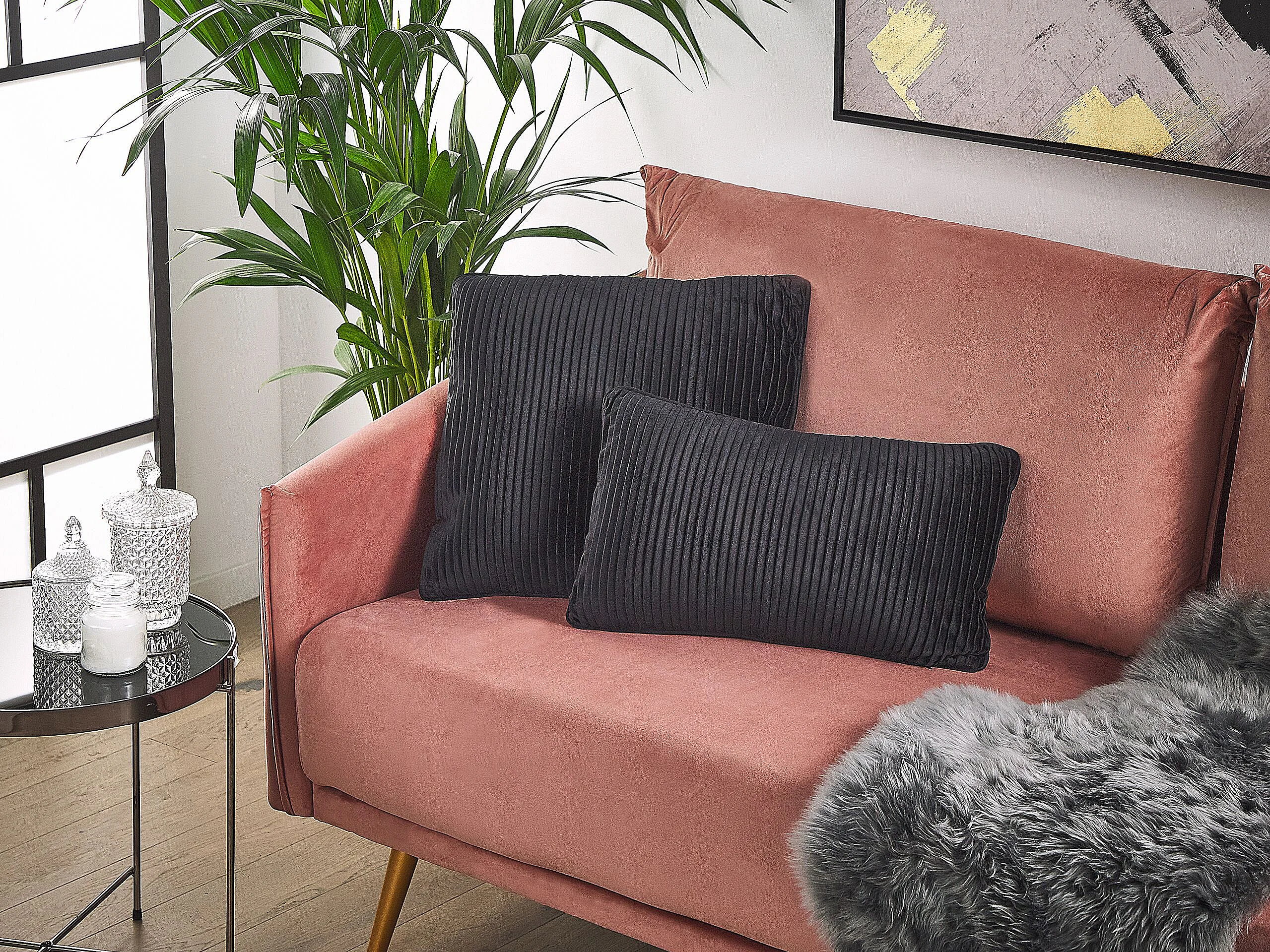 Conjunto de 2 almofadas decorativas GUDARI Veludo 30 x 50 cm Preto Às riscas