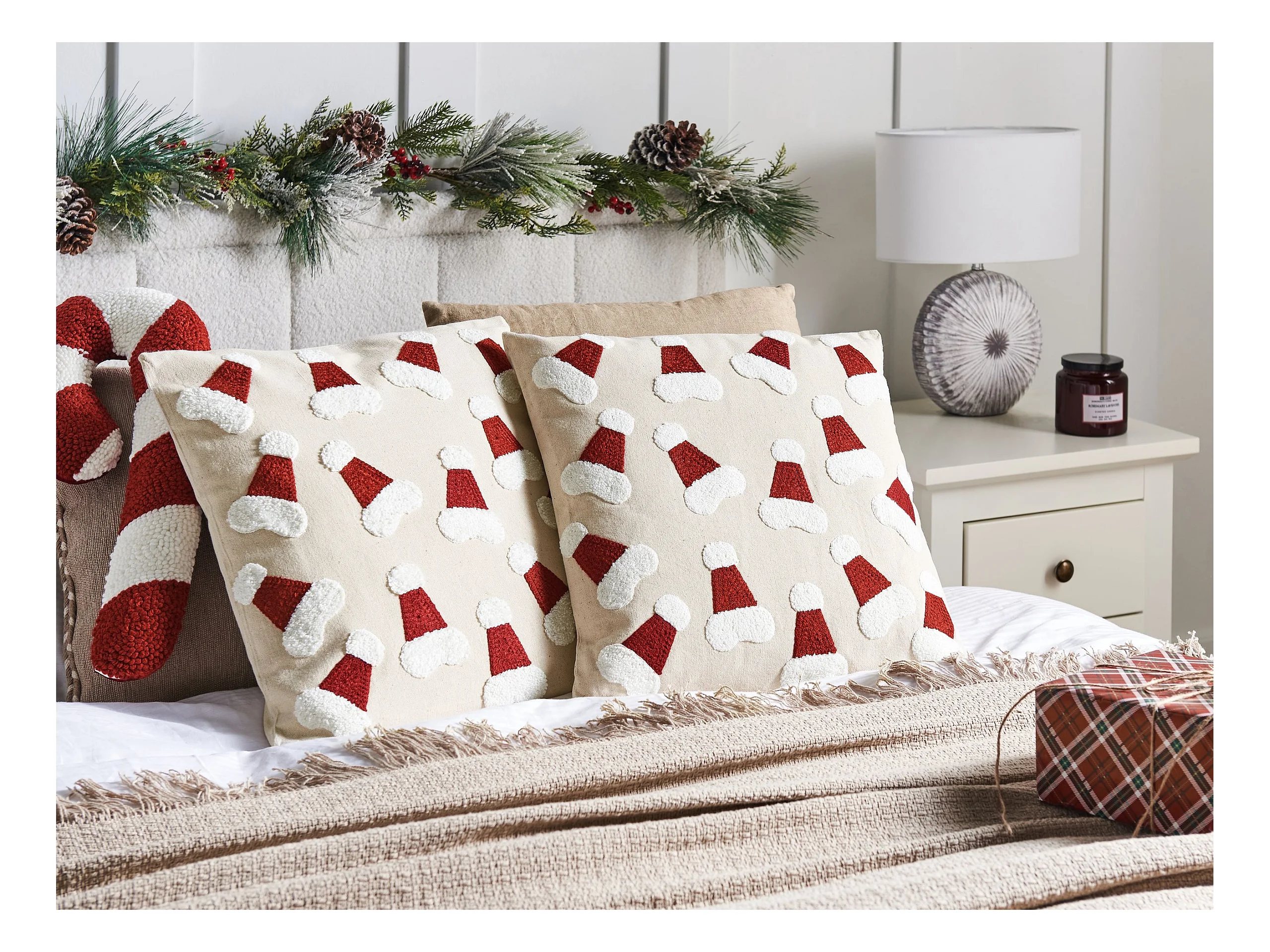 Conjunto de 2 almofadas decorativas SUGARPLUM Algodão 45 x 45 cm Creme claro Padrão natalicio