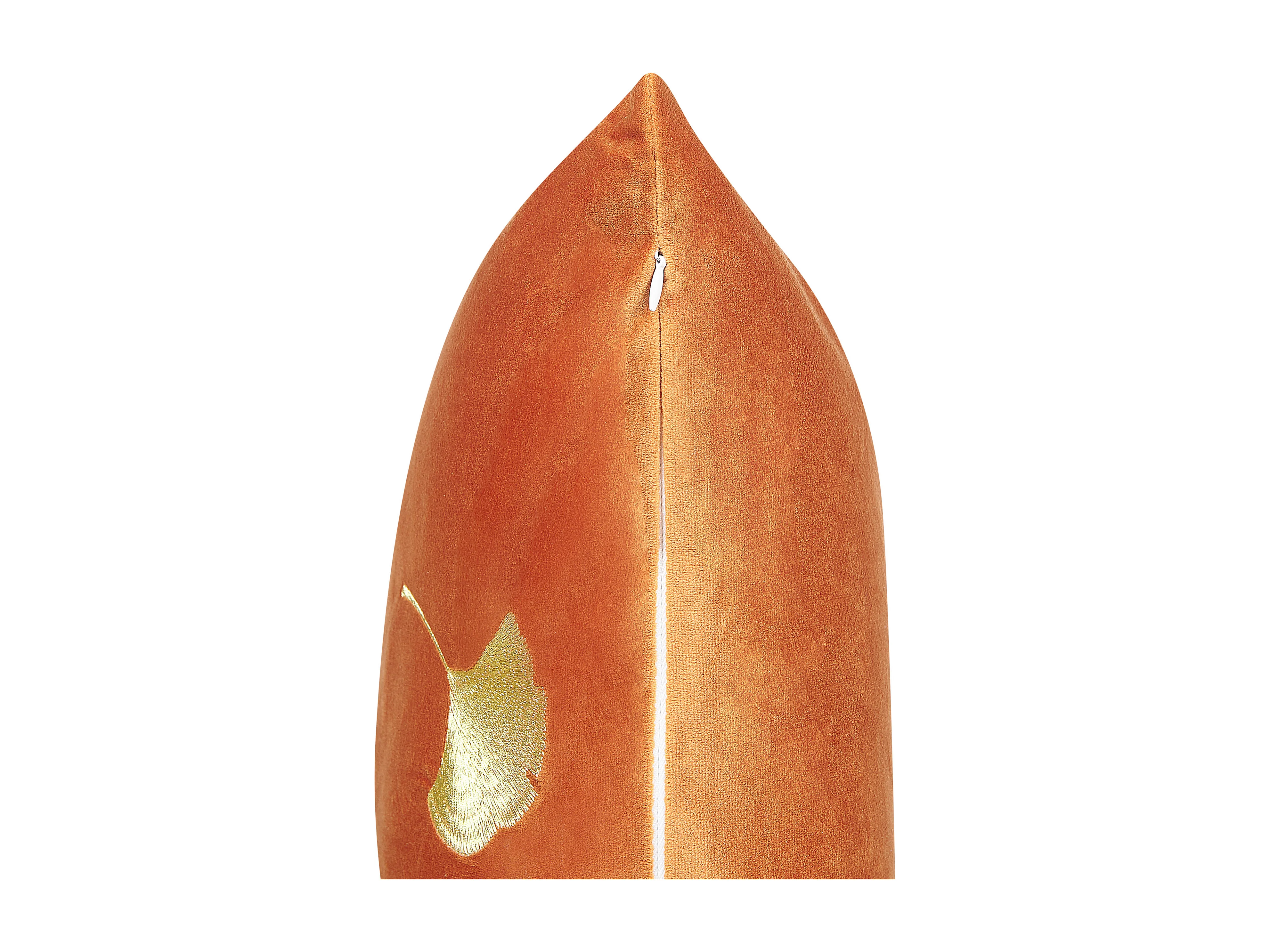 Conjunto de 2 almofadas decorativas POINSETTIA Veludo 45 x 45 cm Laranja Padrão de plantas