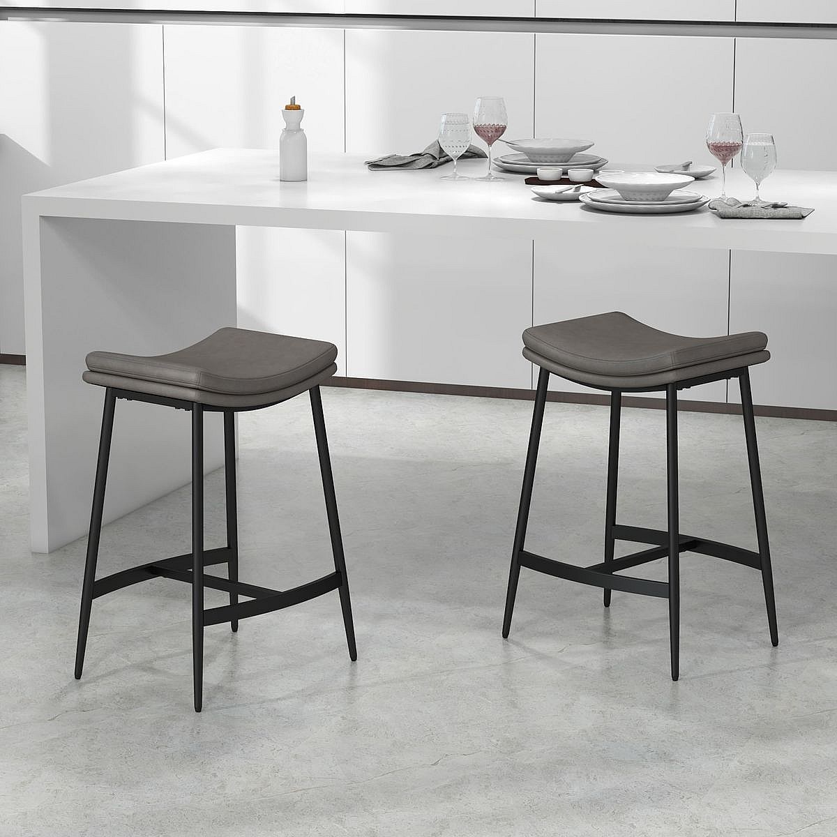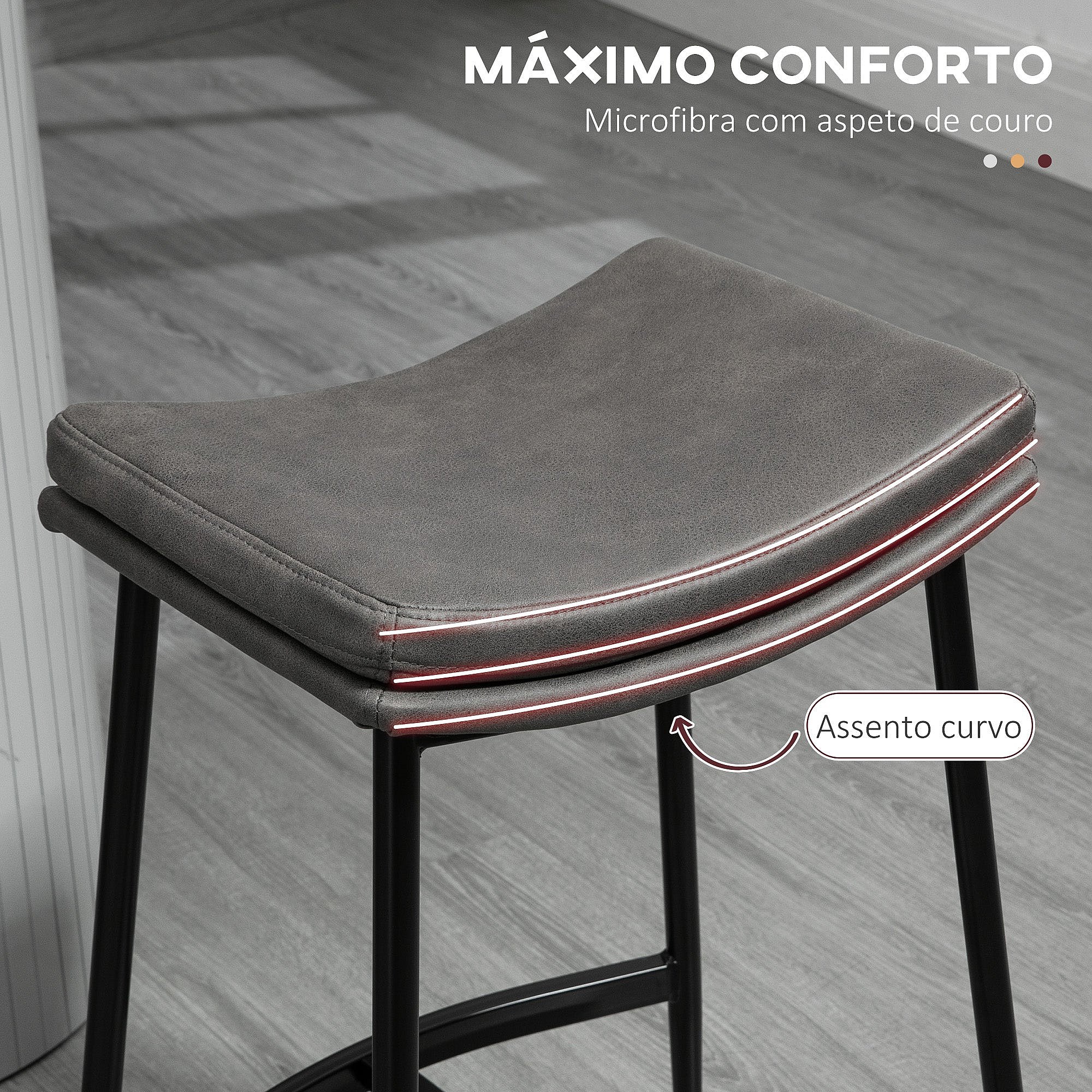 Conjunto de 2 Bancos de Bar Altos com Estilo Industrial em Cinza - Estrutura de Aço e Conforto Extra