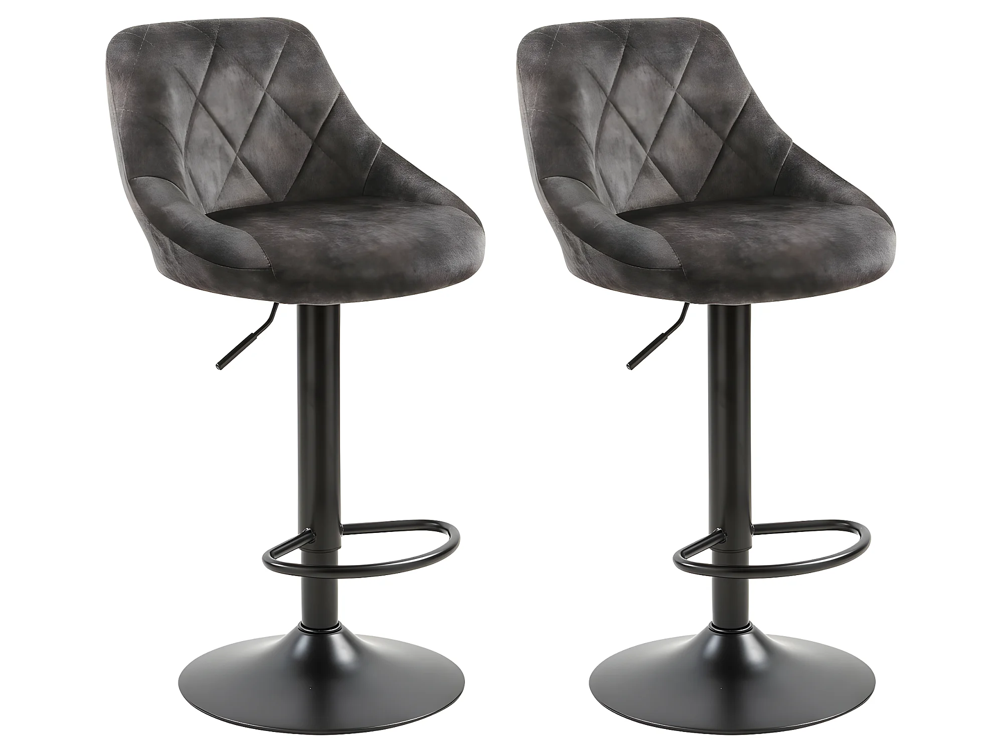 Conjunto de 2 bancos de bar, altura ajustável - tecido e metal - antracite - TRACER