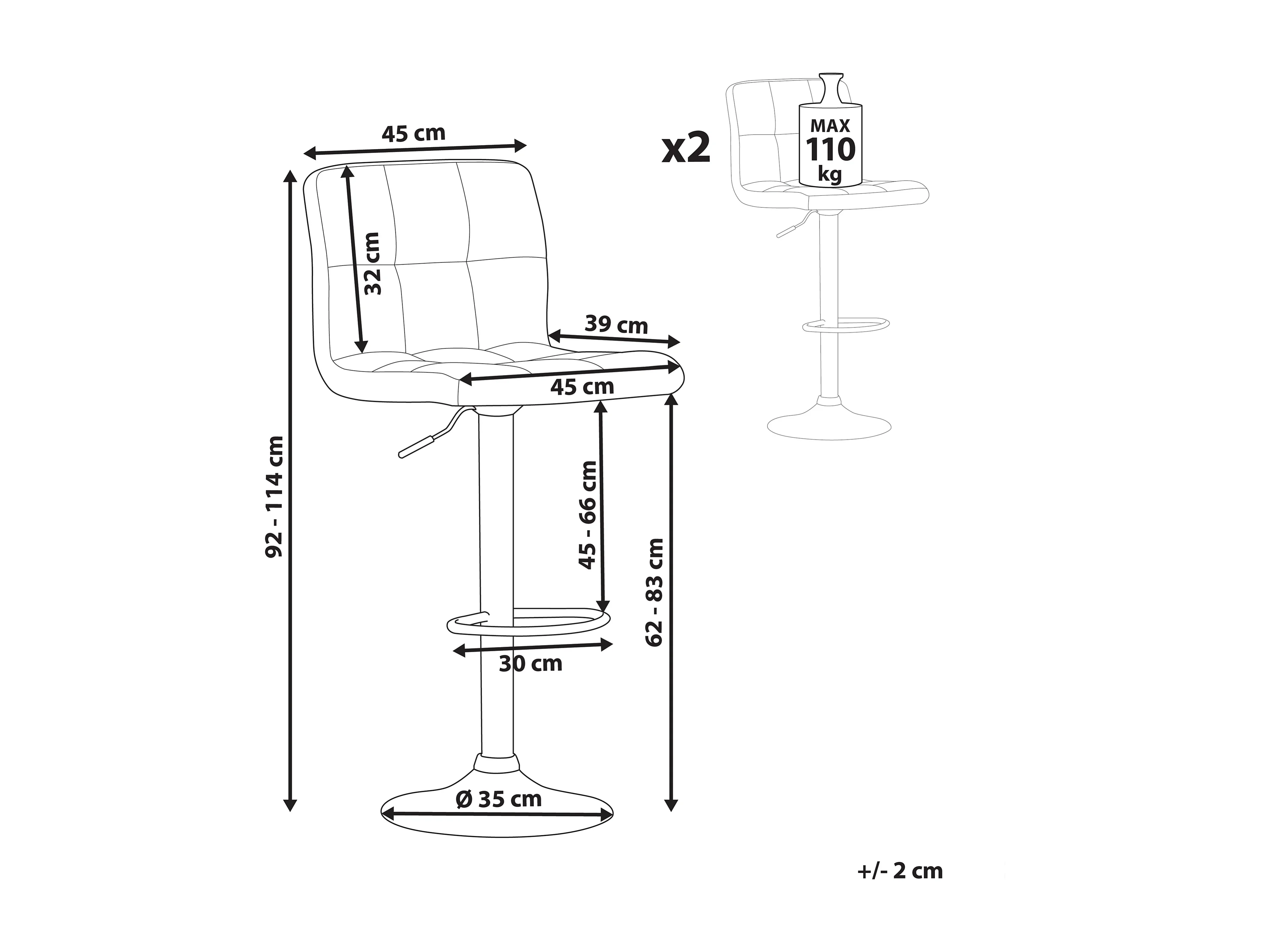 Conjunto de 2 bancos de bar MARION Cinzento claro
