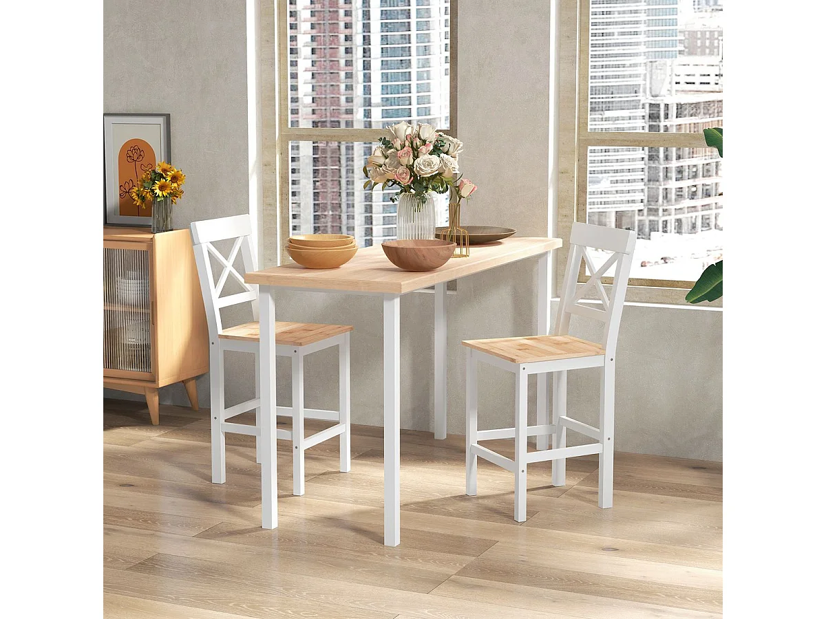 Conjunto de 2 Bancos de Bar em Madeira Estilo Rústico para Cozinha e Sala de Jantar - Modelo Grenoble