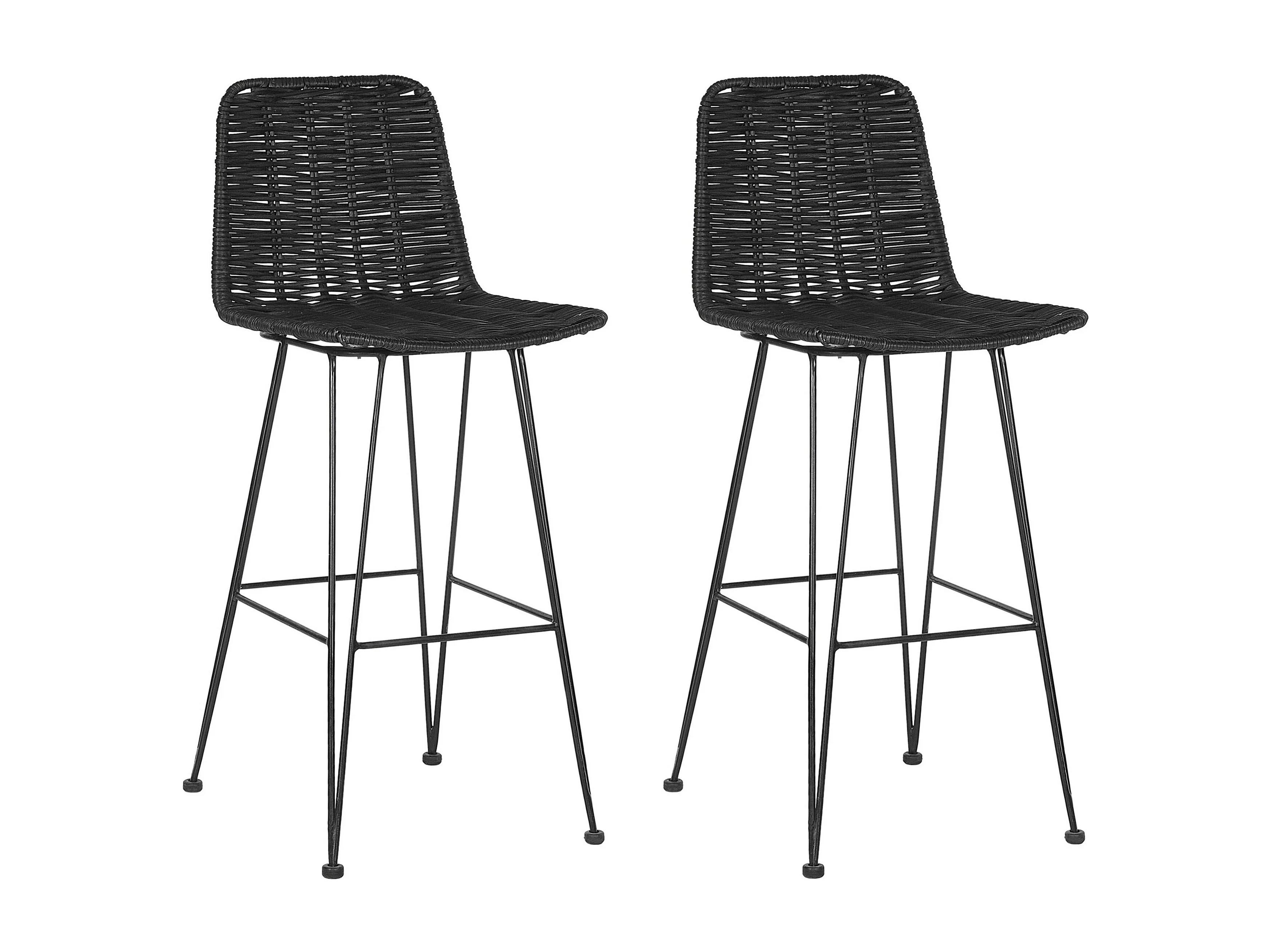 Conjunto de 2 bancos de bar CASSITA Rattan Preto