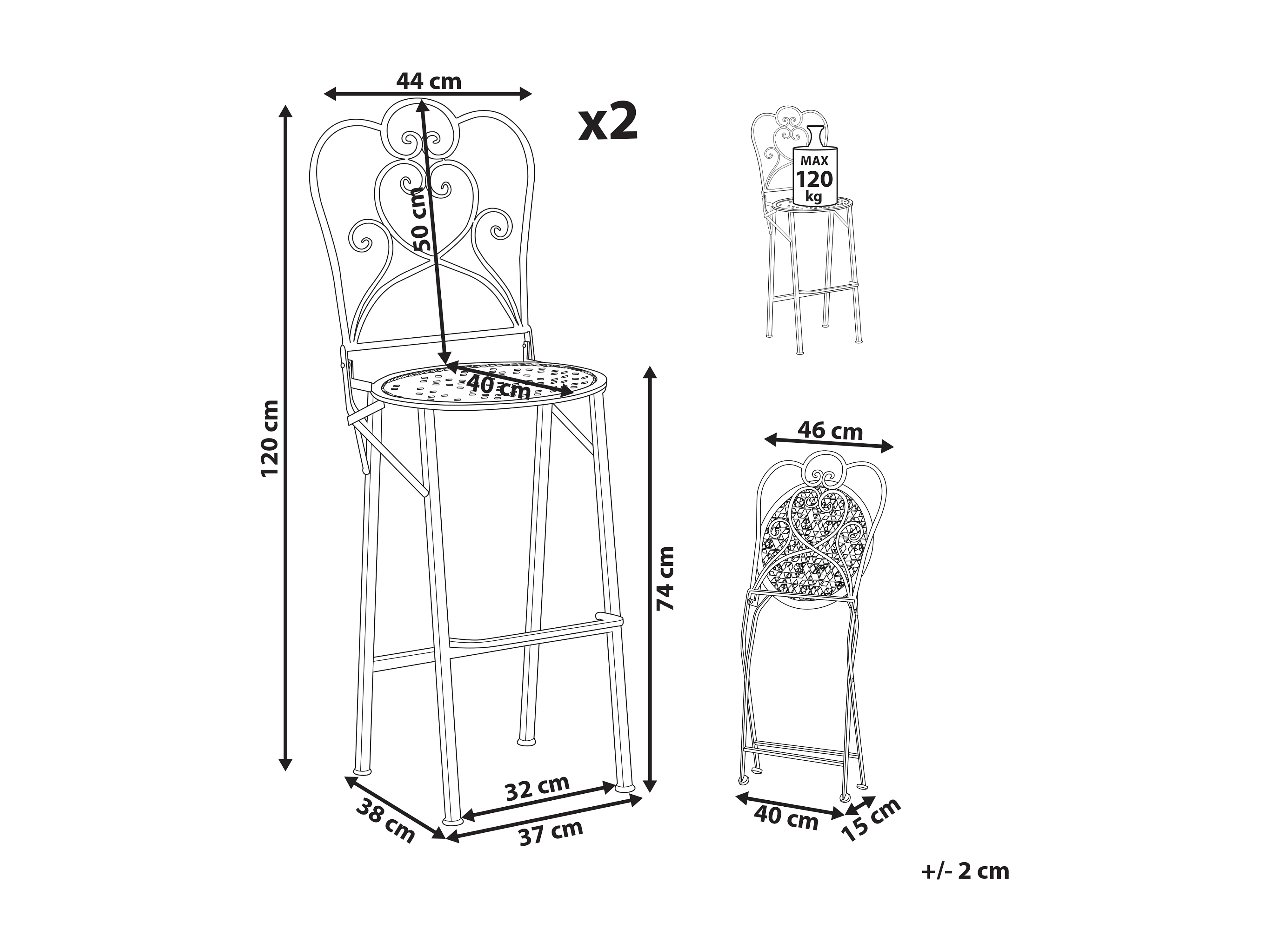 Conjunto de 2 bancos de bar para jardim TRIESTE Dobrável Metal Creme claro