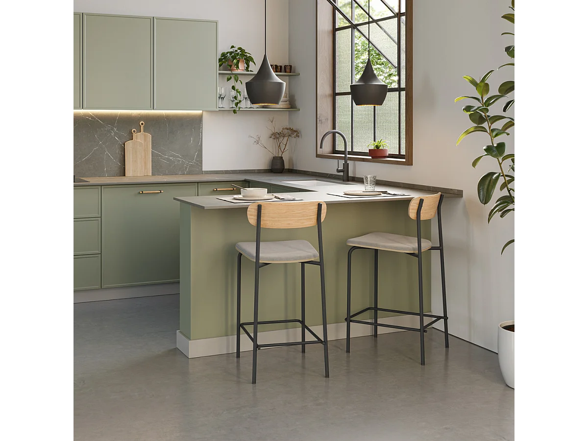 Conjunto de 2 bancos de madeira com assento acolchoado 41x48 h94 cm