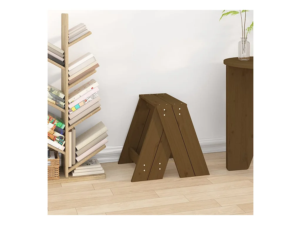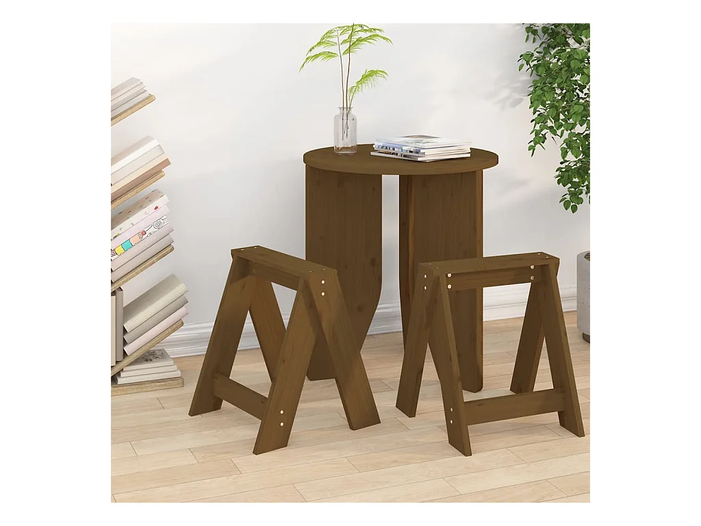 Conjunto de 2 bancos em madeira maciça de pinho castanho mel 40x40x60 cm