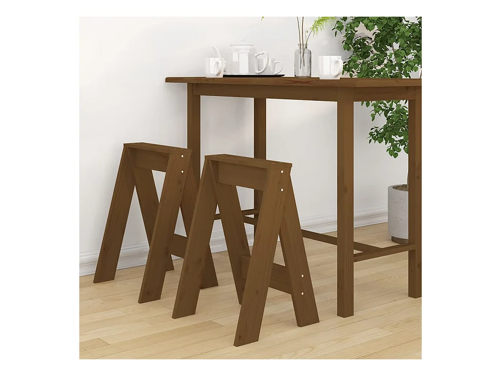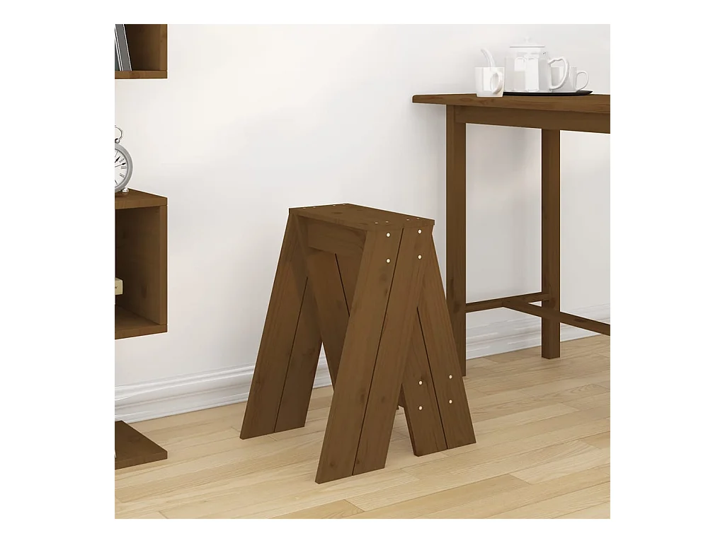 Conjunto de 2 bancos em madeira maciça de pinho castanho mel 40x40x60 cm