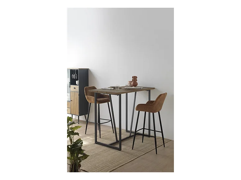 Conjunto de 2 bancos altos industriais de madeira e metal com apoio para pés para cozinha 42x42x65 cm marrom
