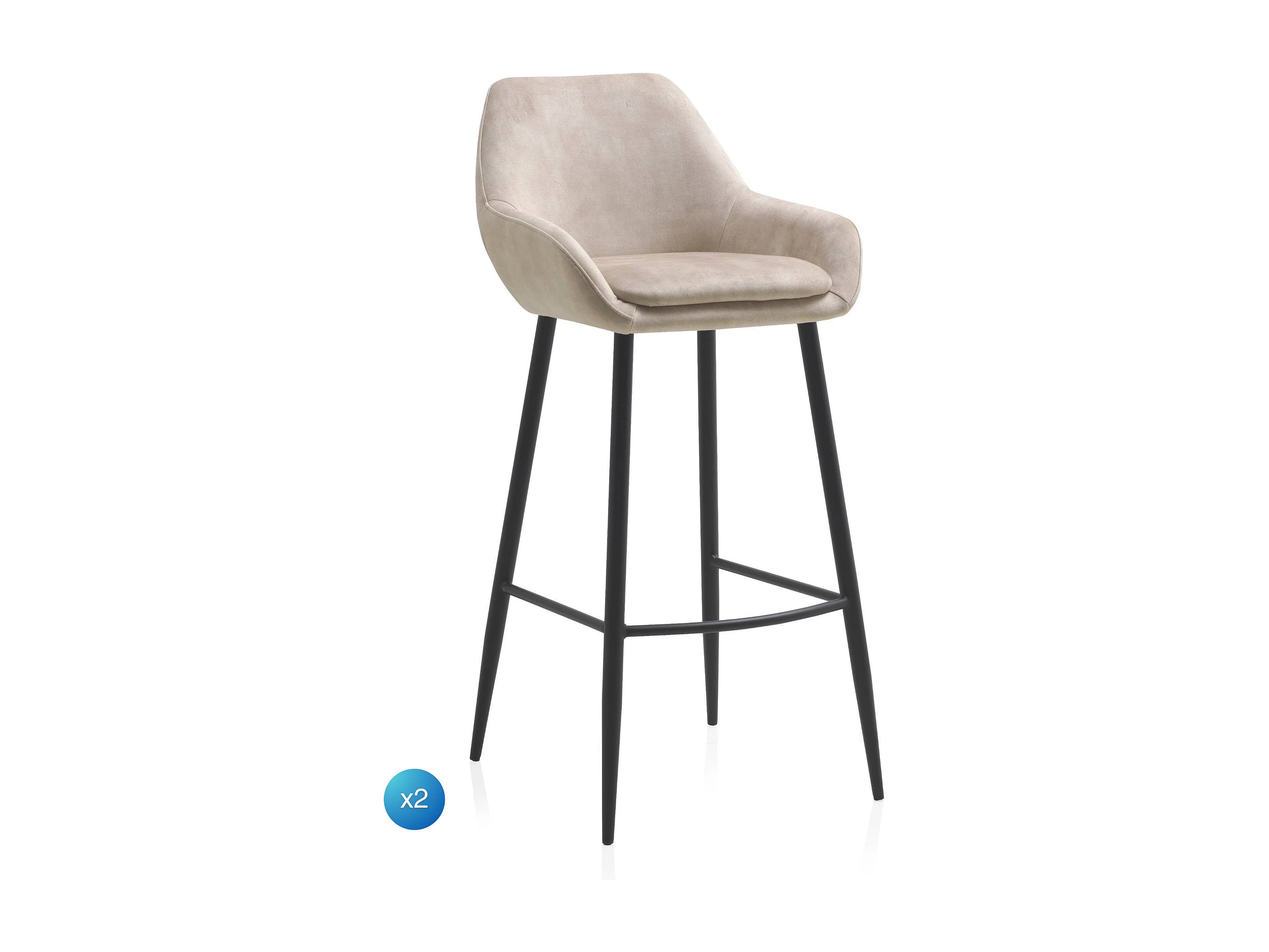 Conjunto de 2 bancos estofados em bege com pernas em metal preto