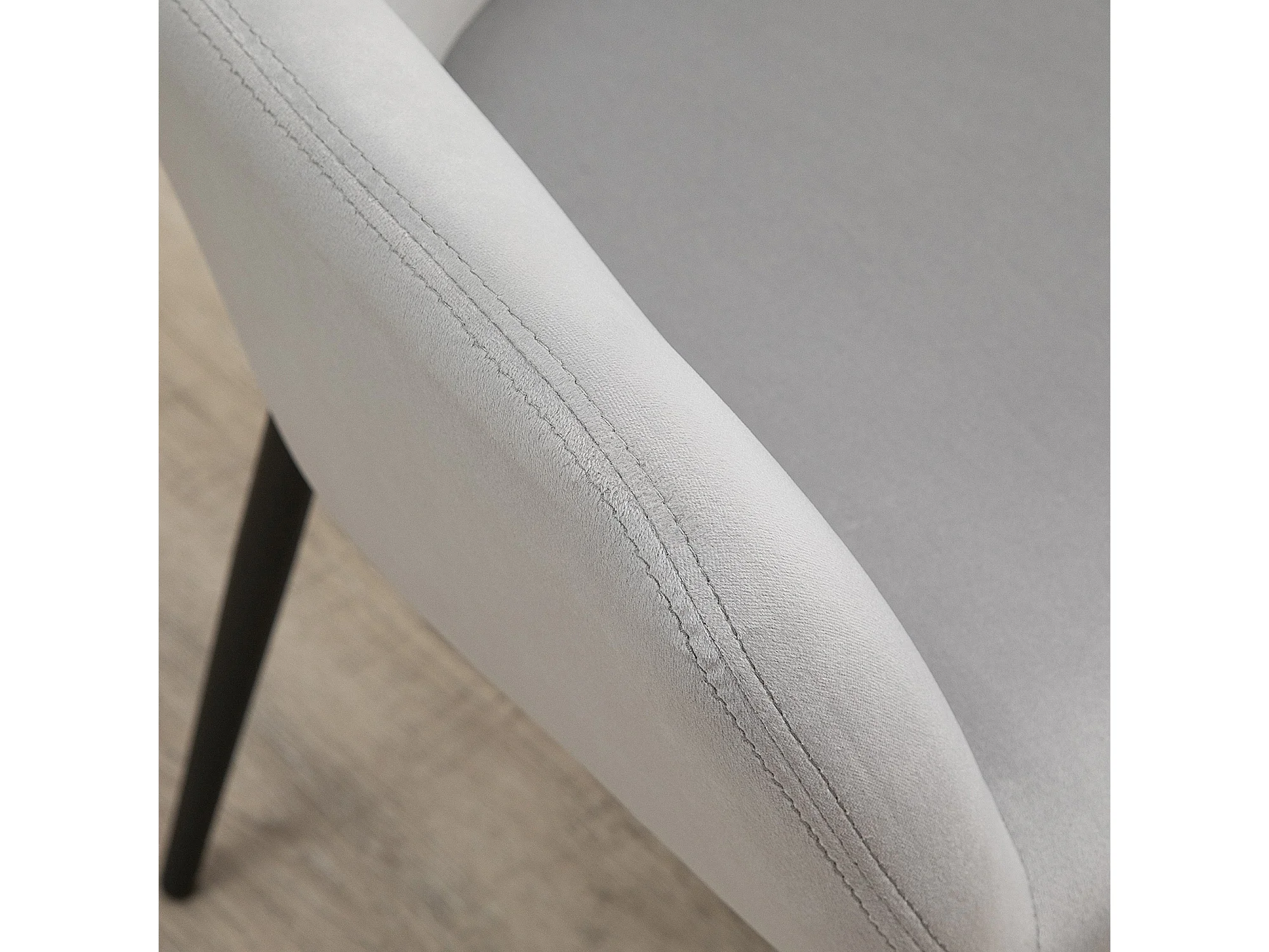 Conjunto de 2 cadeiras com braços em veludo cinza claro, pernas de metal preto