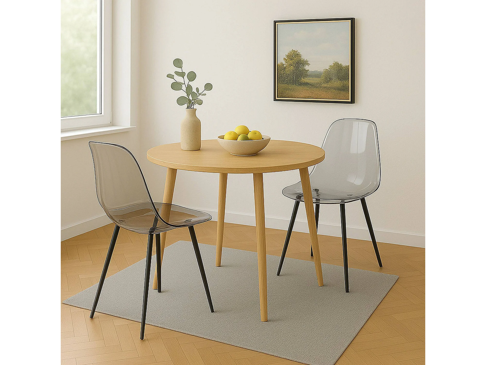 Conjunto de 2 cadeiras Dabdalhad, Cadeirão PET, Cadeira de jantar ergonómica, Assento de reunião, 53x46h81 cm, Fum?