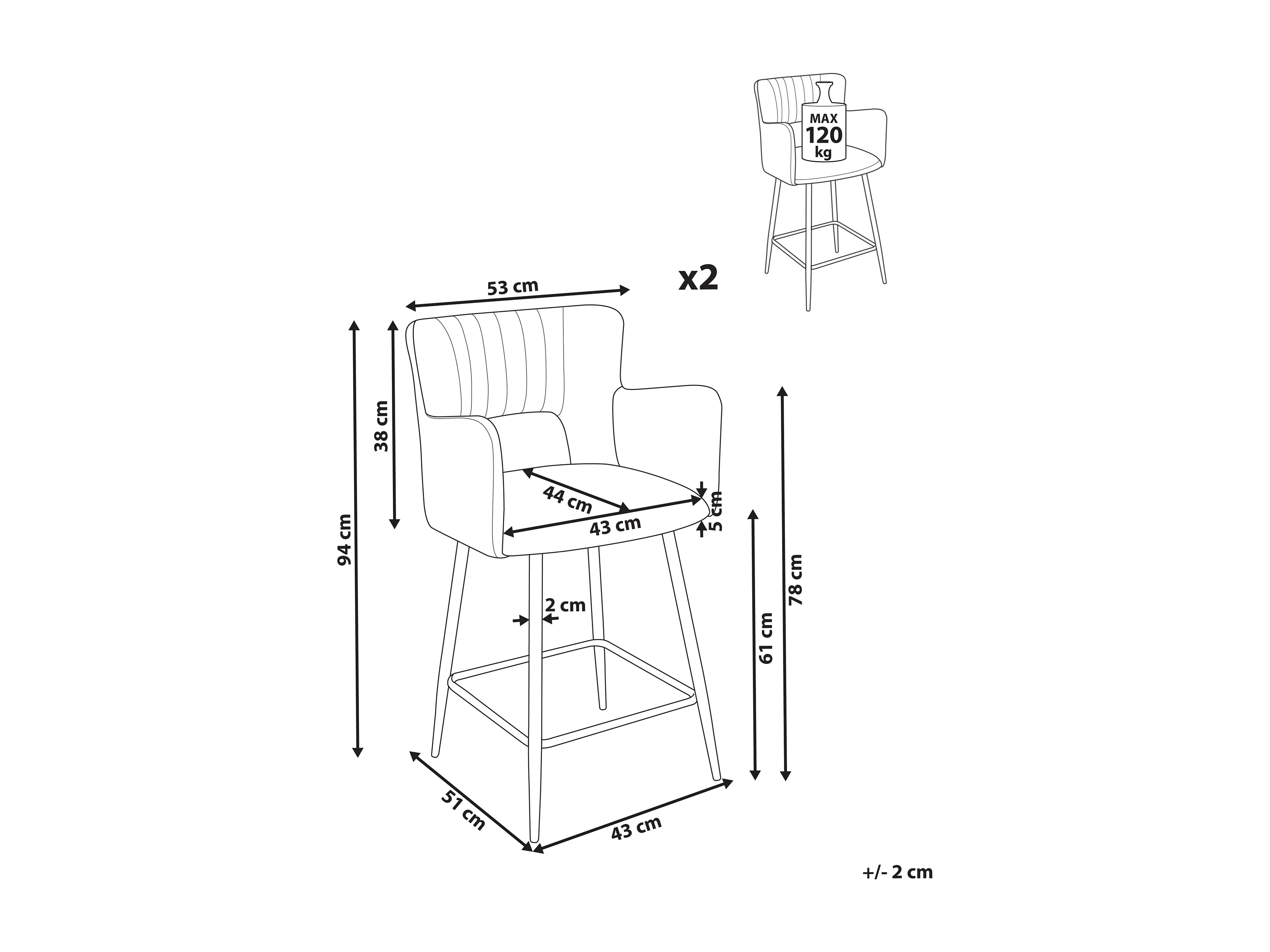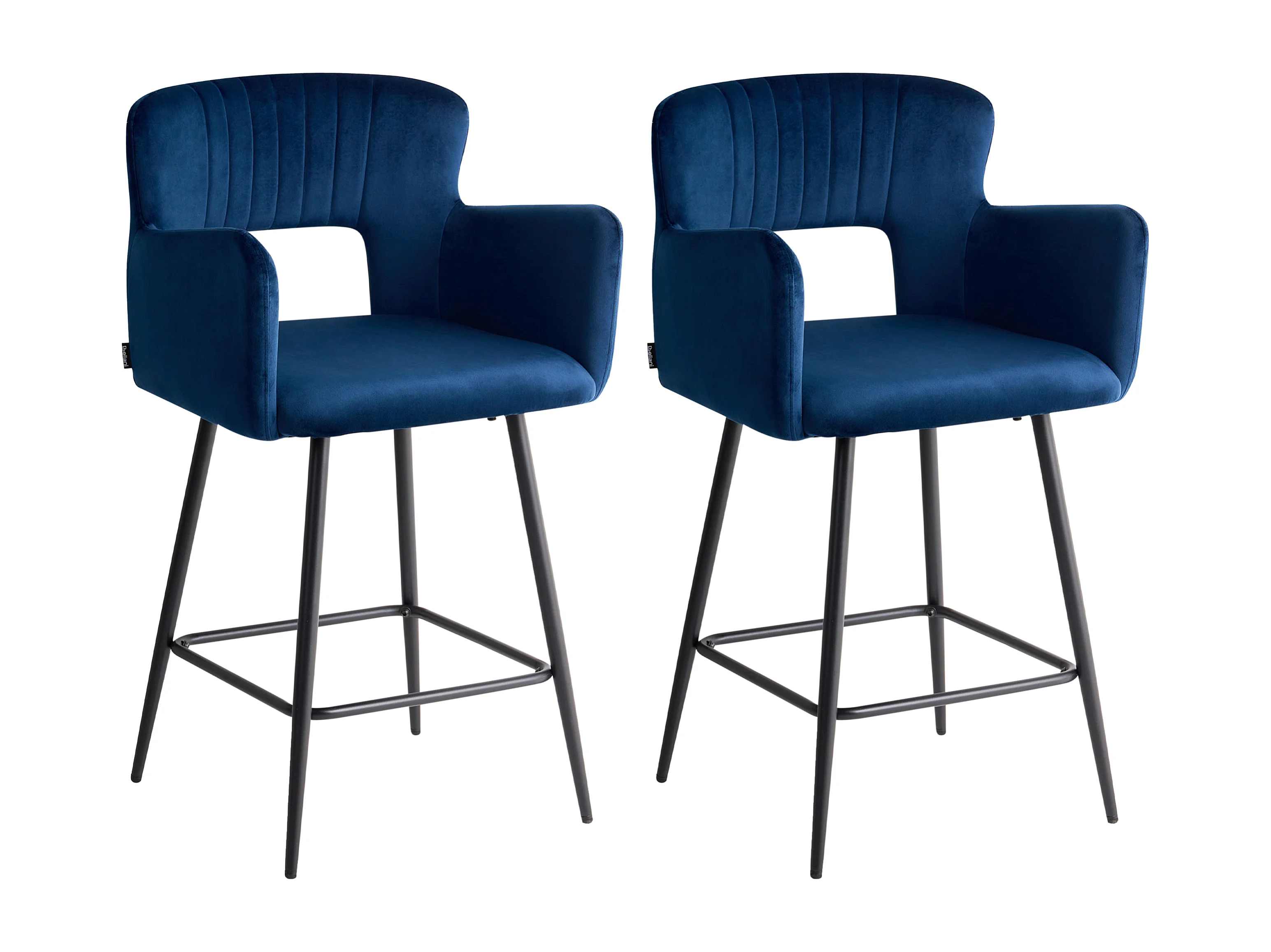 Conjunto de 2 bancos de bar SANILAC Veludo Azul marinho