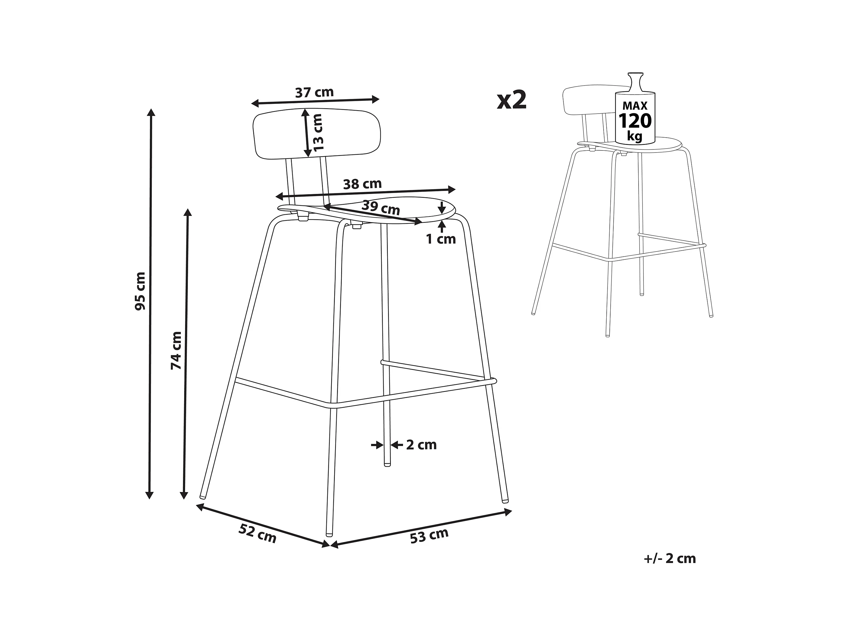 Lot de 2 tabourets de bar avec dossier effet cuir tilleul collection NETS - Style industriel