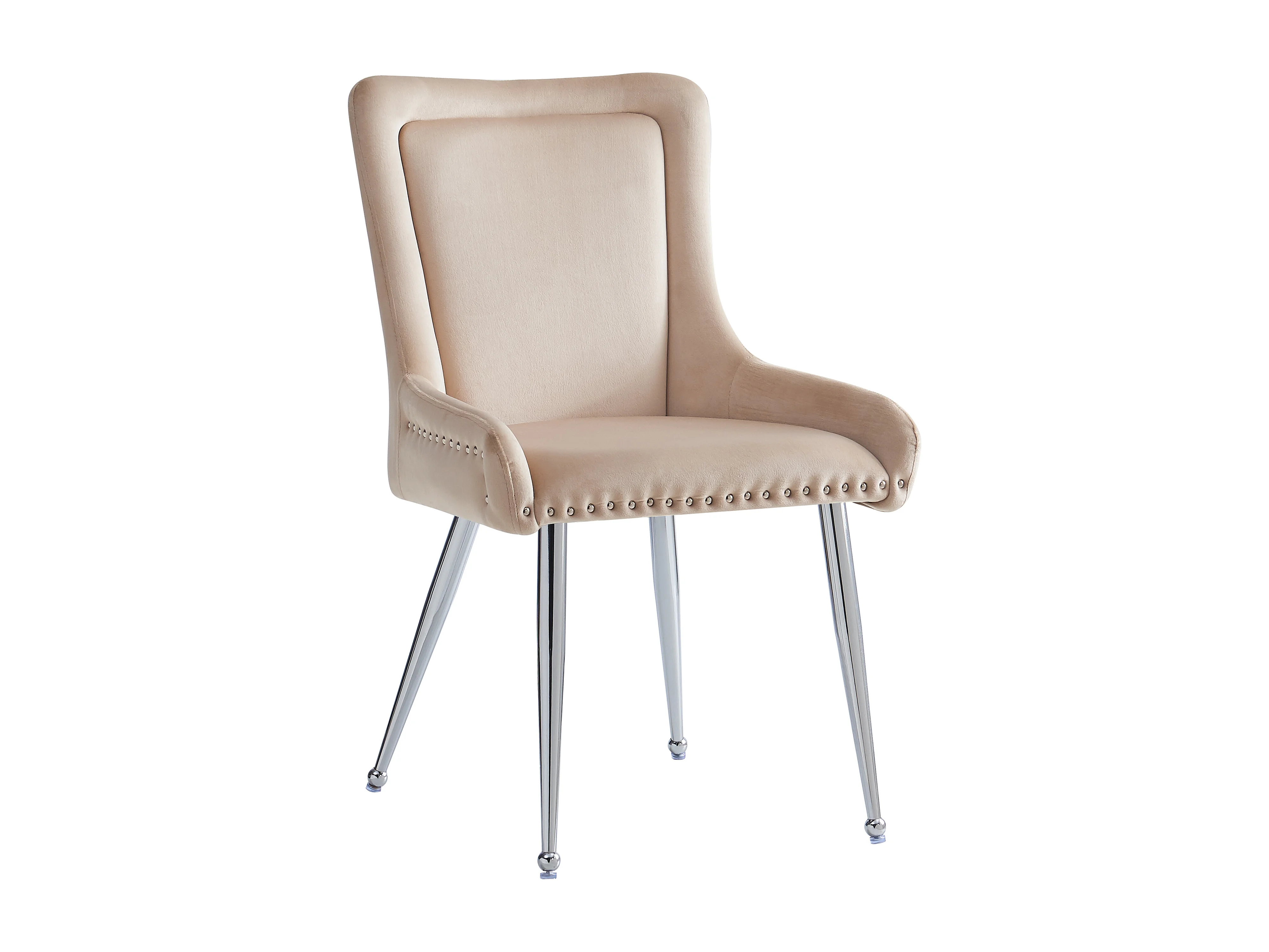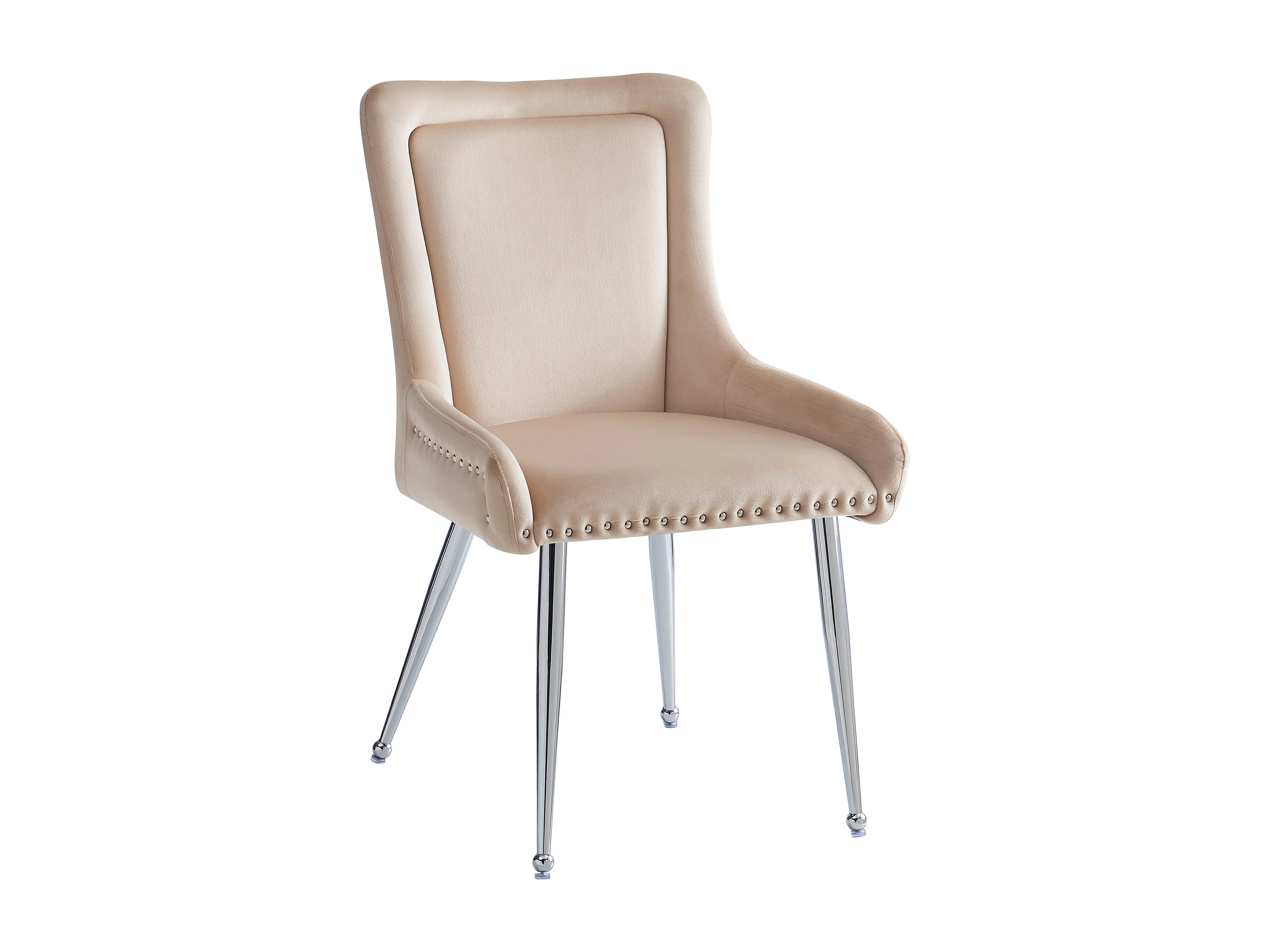 Conjunto de 2 cadeiras de cozinha, tecido de veludo, pernas de metal prateado, bege
