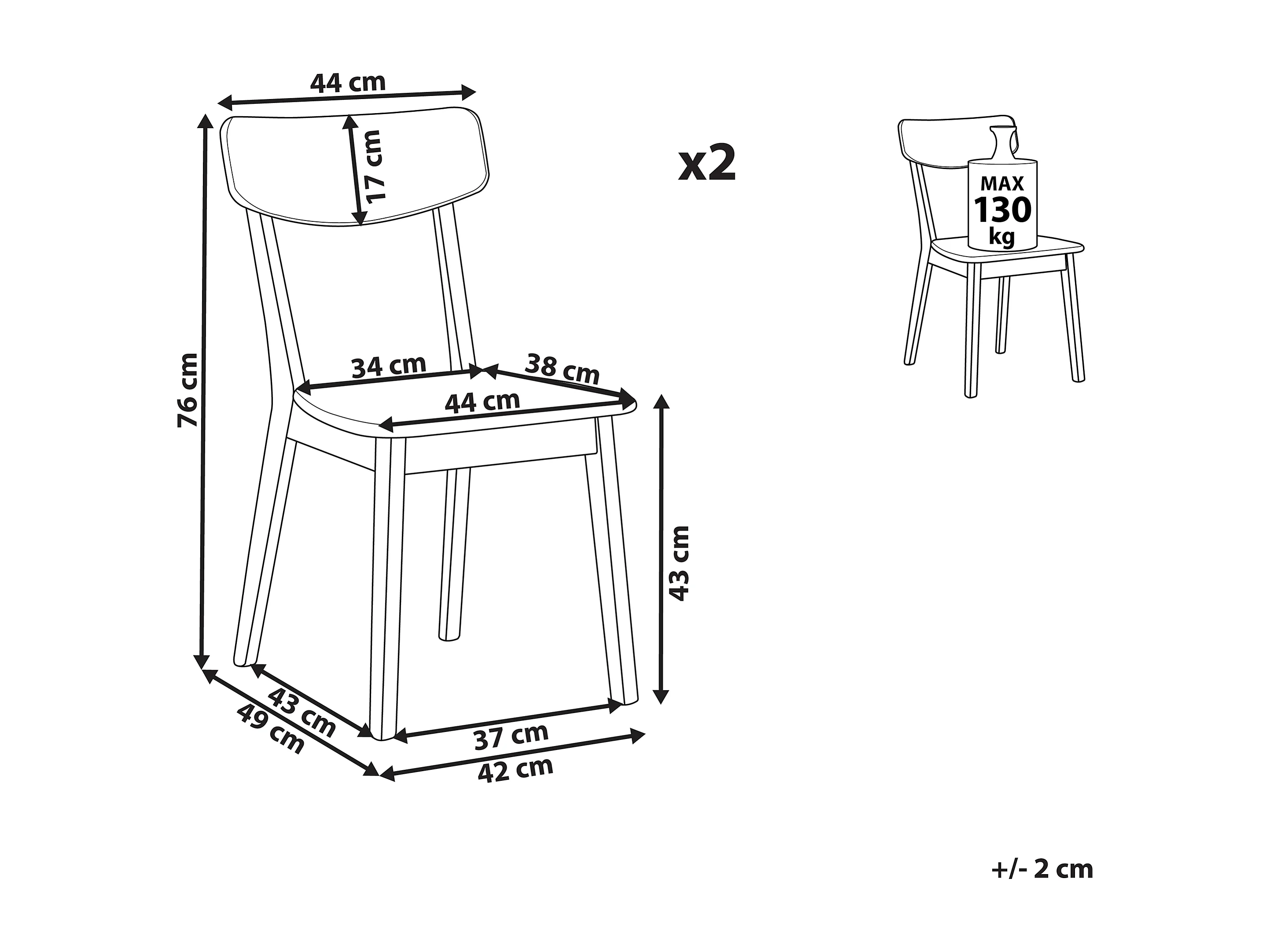 Conjunto de 2 cadeiras de jantar SANTOS Branco