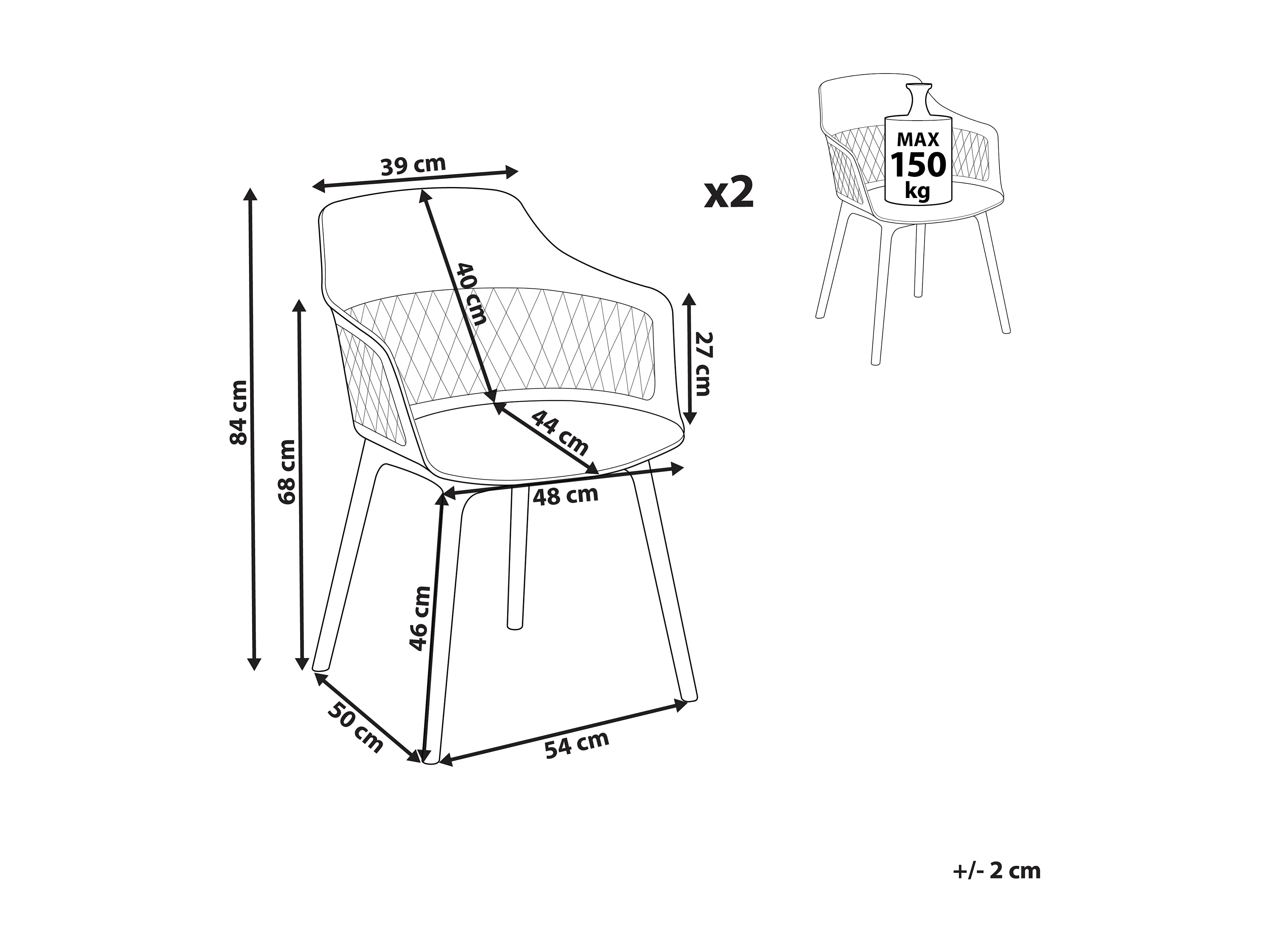 Cadeira de jantar MCW-N38 (conjunto de 2), antracite Almofada cinzento escuro