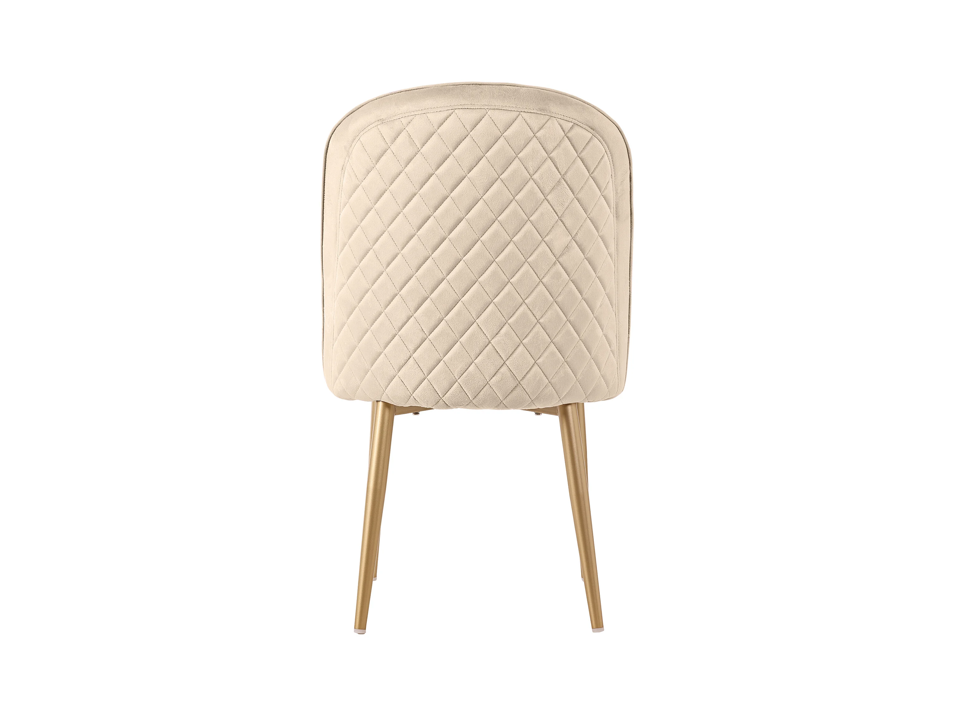 Conjunto de 2 cadeiras de jantar, veludo bege, encosto diamante, pernas de metal ajustáveis