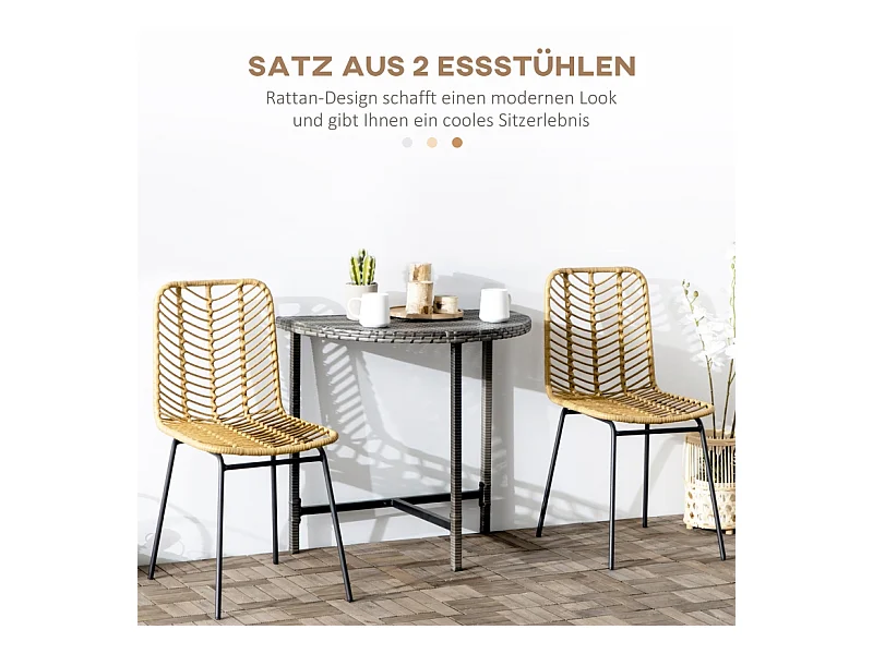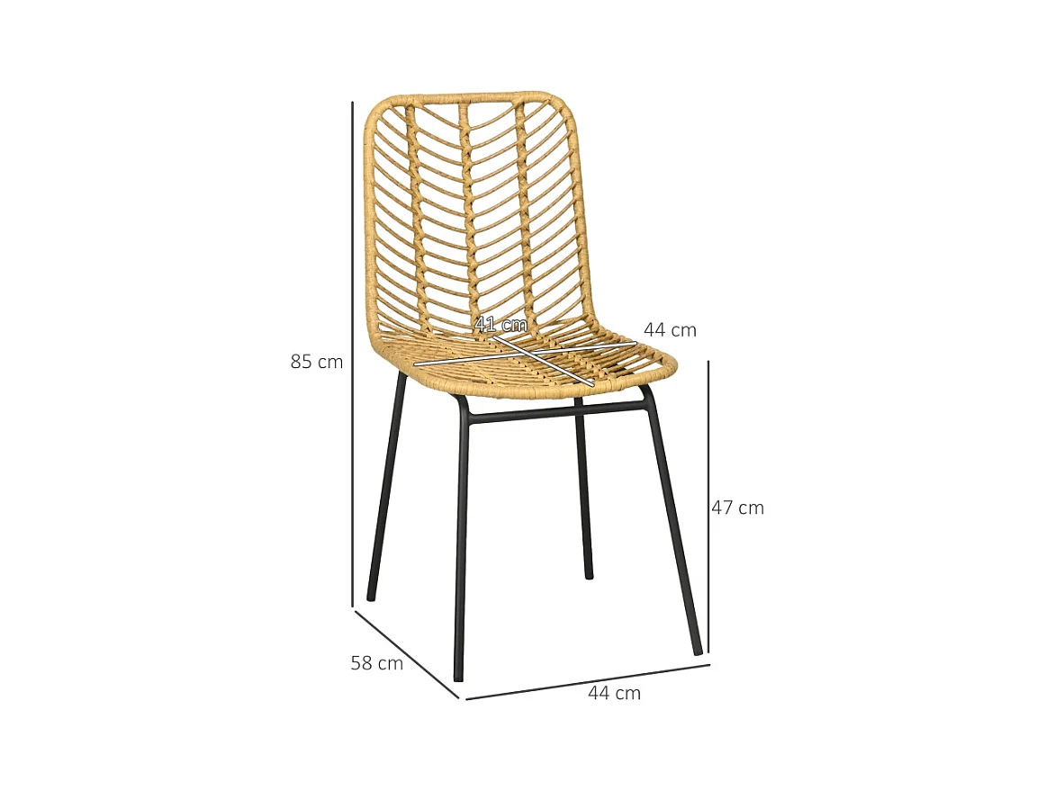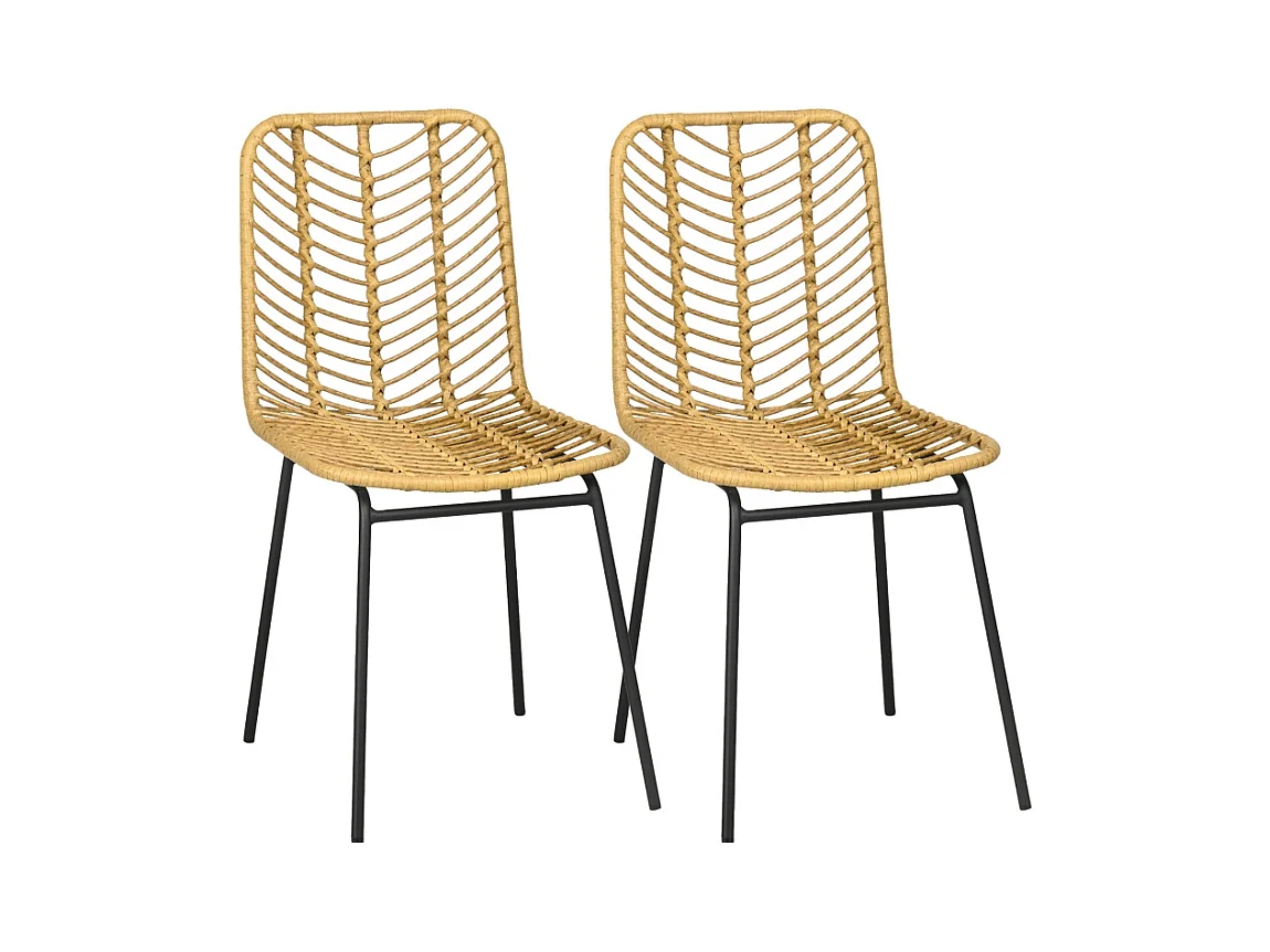 Conjunto de 2 cadeiras de jantar de vime de design em metal amarelo para cozinha e sala de estar 44x58x85 cm
