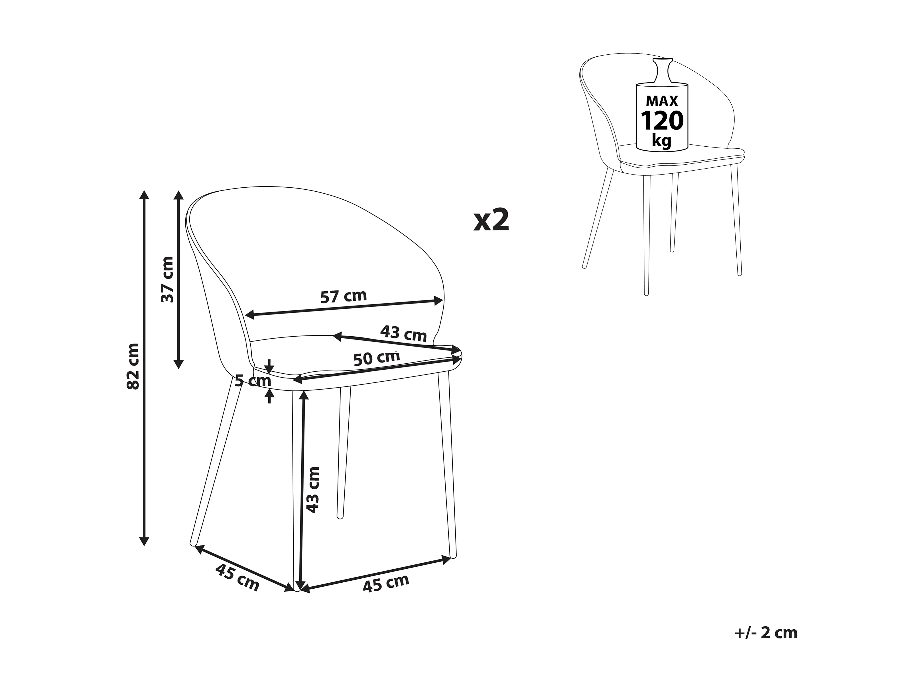 Conjunto de 2 cadeiras de jantar MASON Cinzento claro