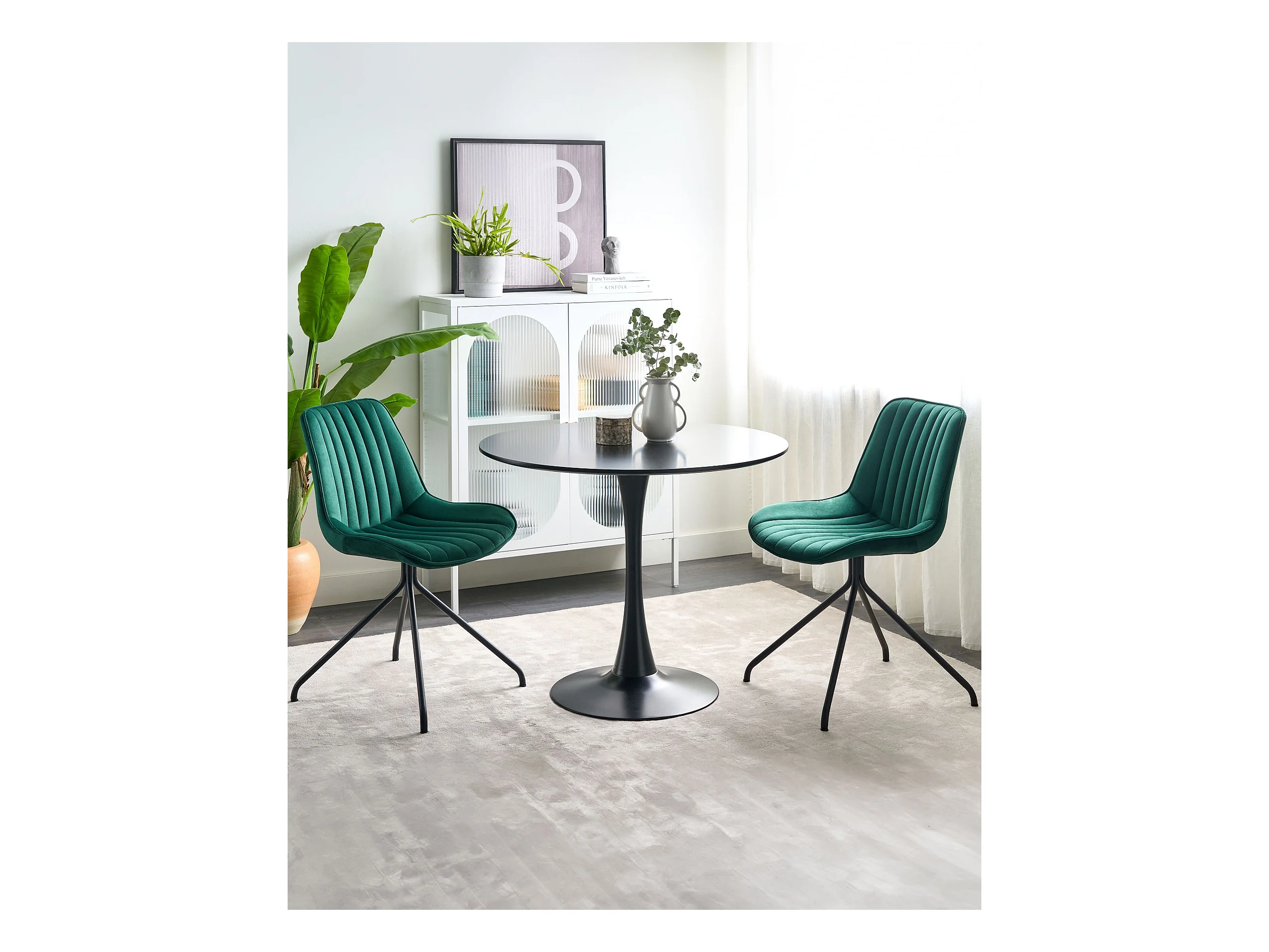 Conjunto de 2 cadeiras de jantar WELLSTON Veludo Verde escuro
