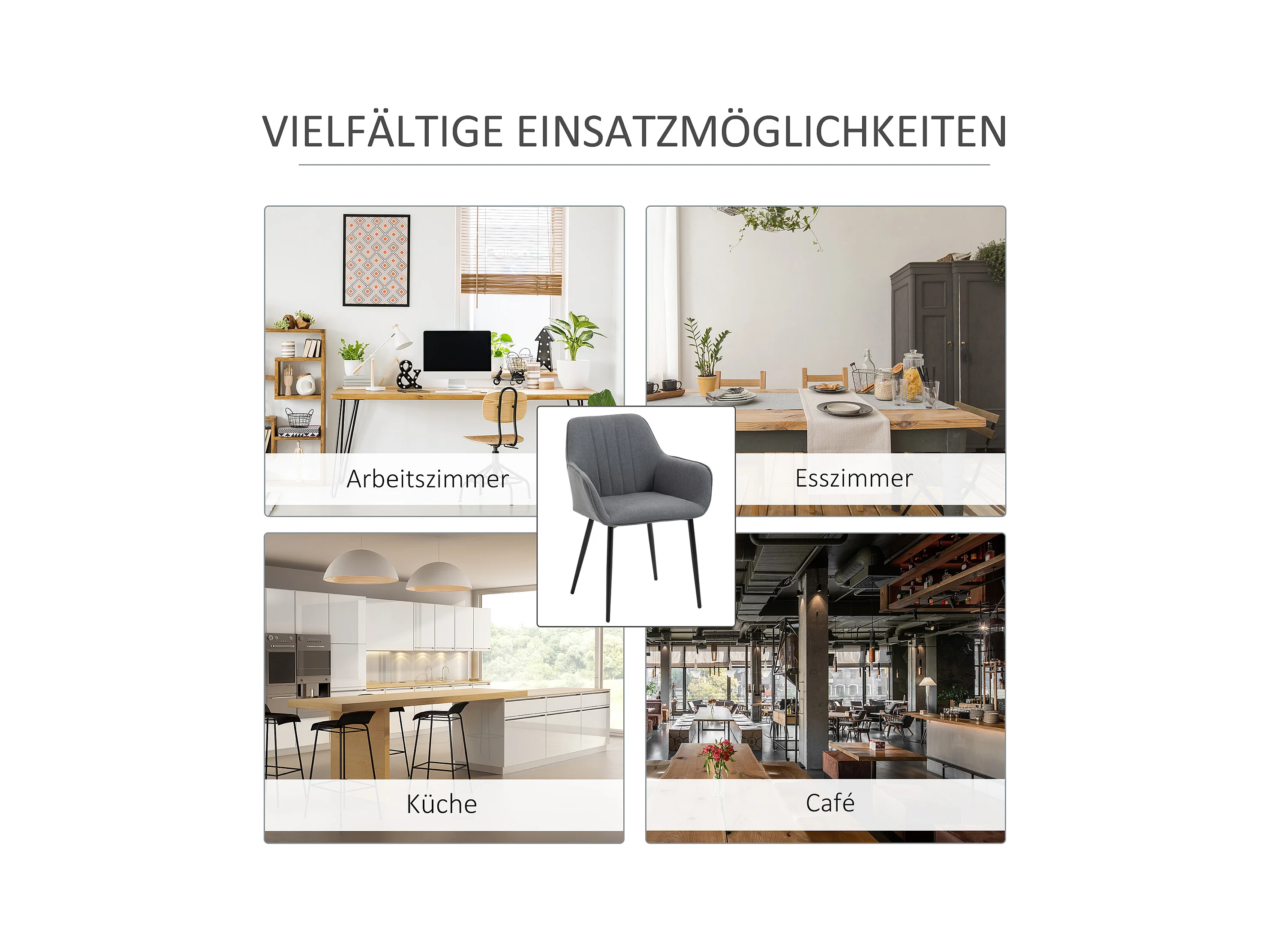 Conjunto de 2 cadeiras de jantar estilo escandinavo em tecido de linho com braços e pernas de metal cinza escuro 59,5x56,5x81 cm