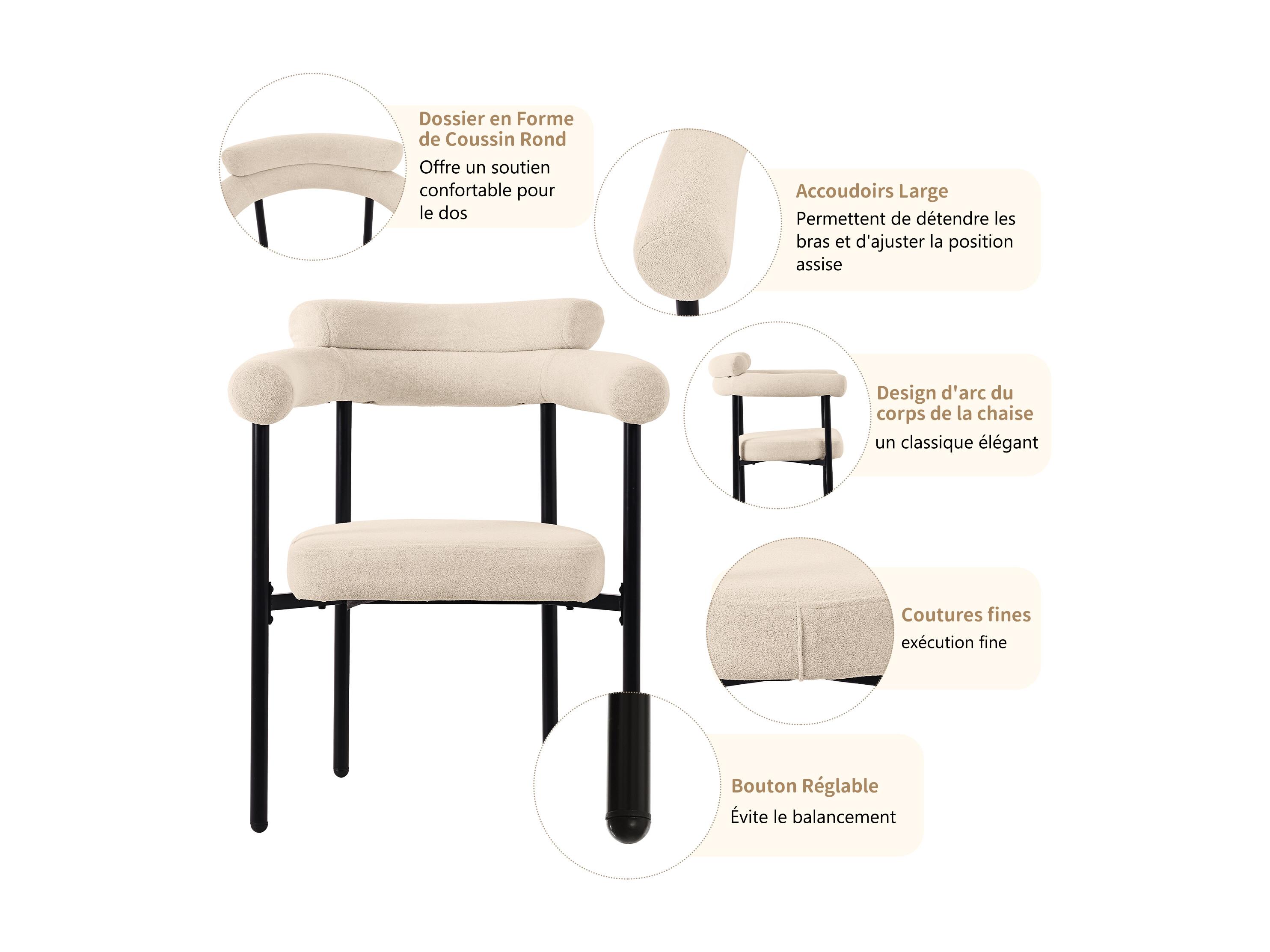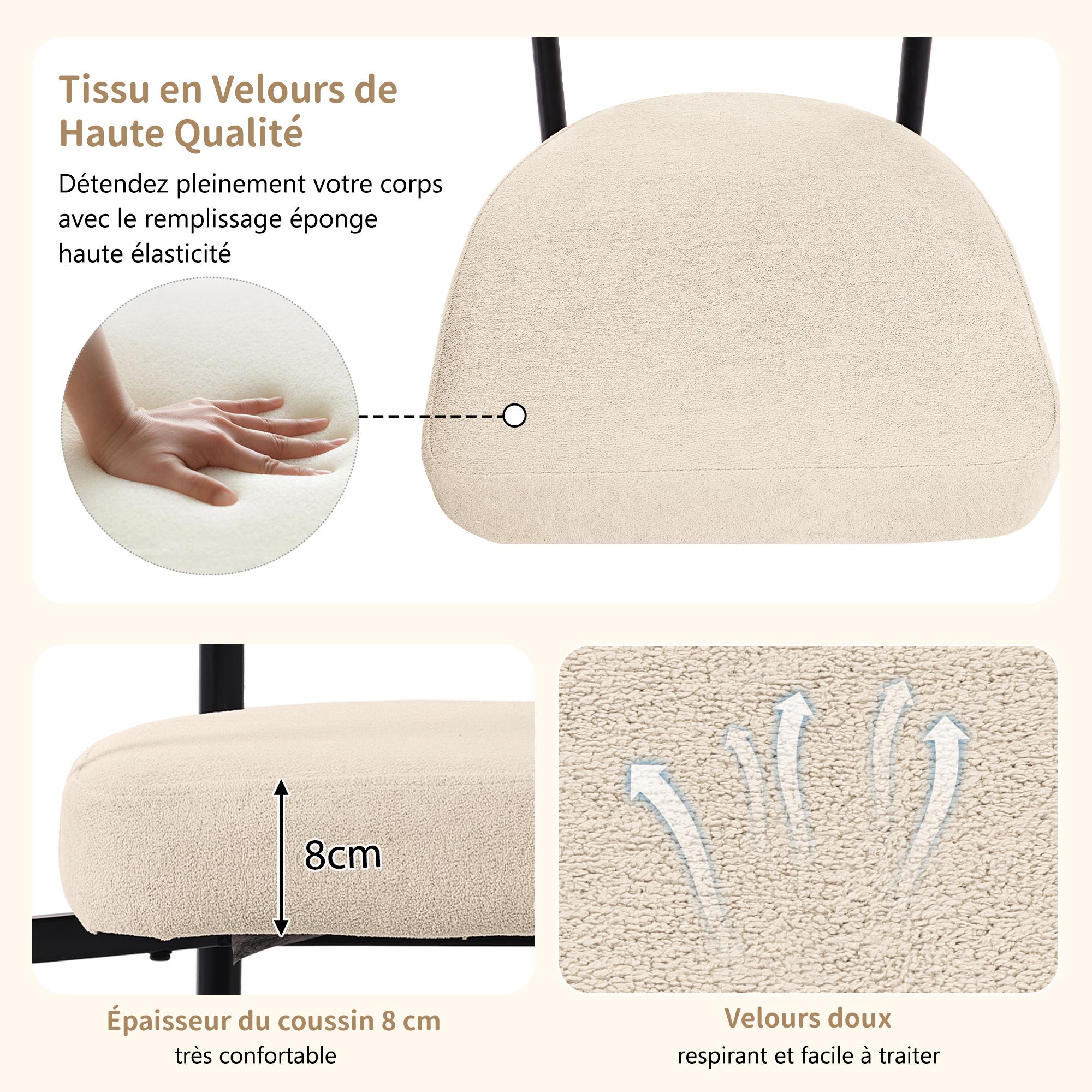 Conjunto de 2 cadeiras de jantar modernas, assentos confortáveis com argolas, sala de estar e escritório, bege