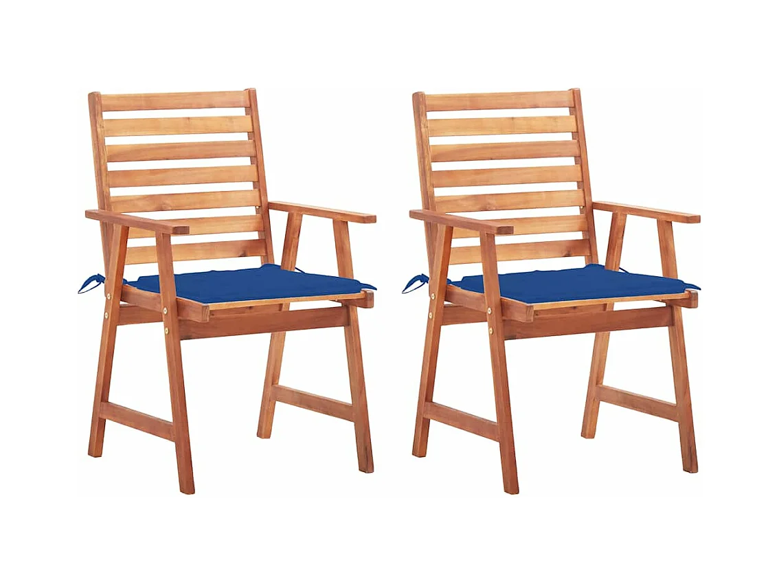 Conjunto de 2 cadeiras de jantar para área externa e almofadas em acácia maciça