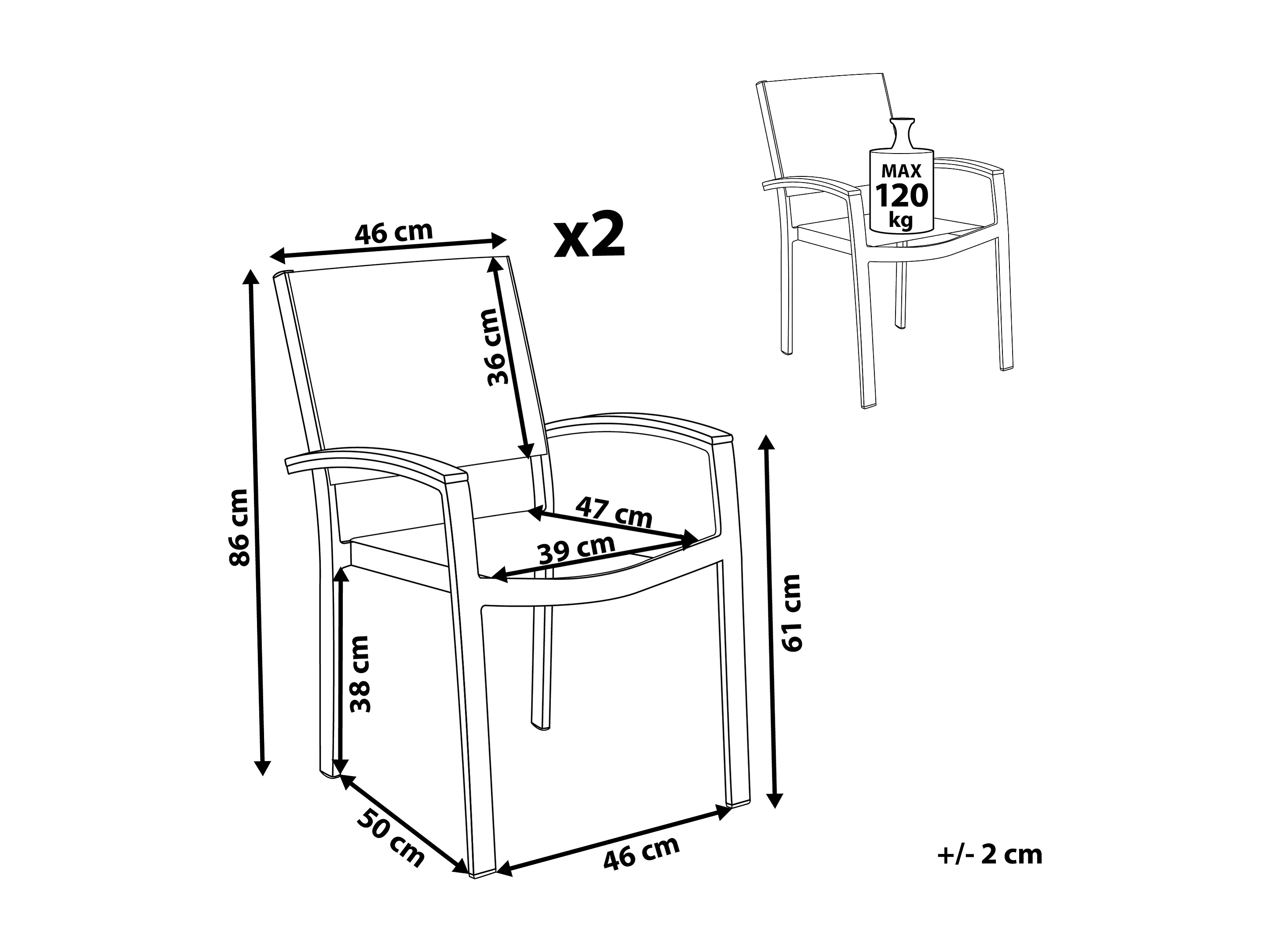 Conjunto de 2 cadeiras de jardim PERETA Metal Cinzento