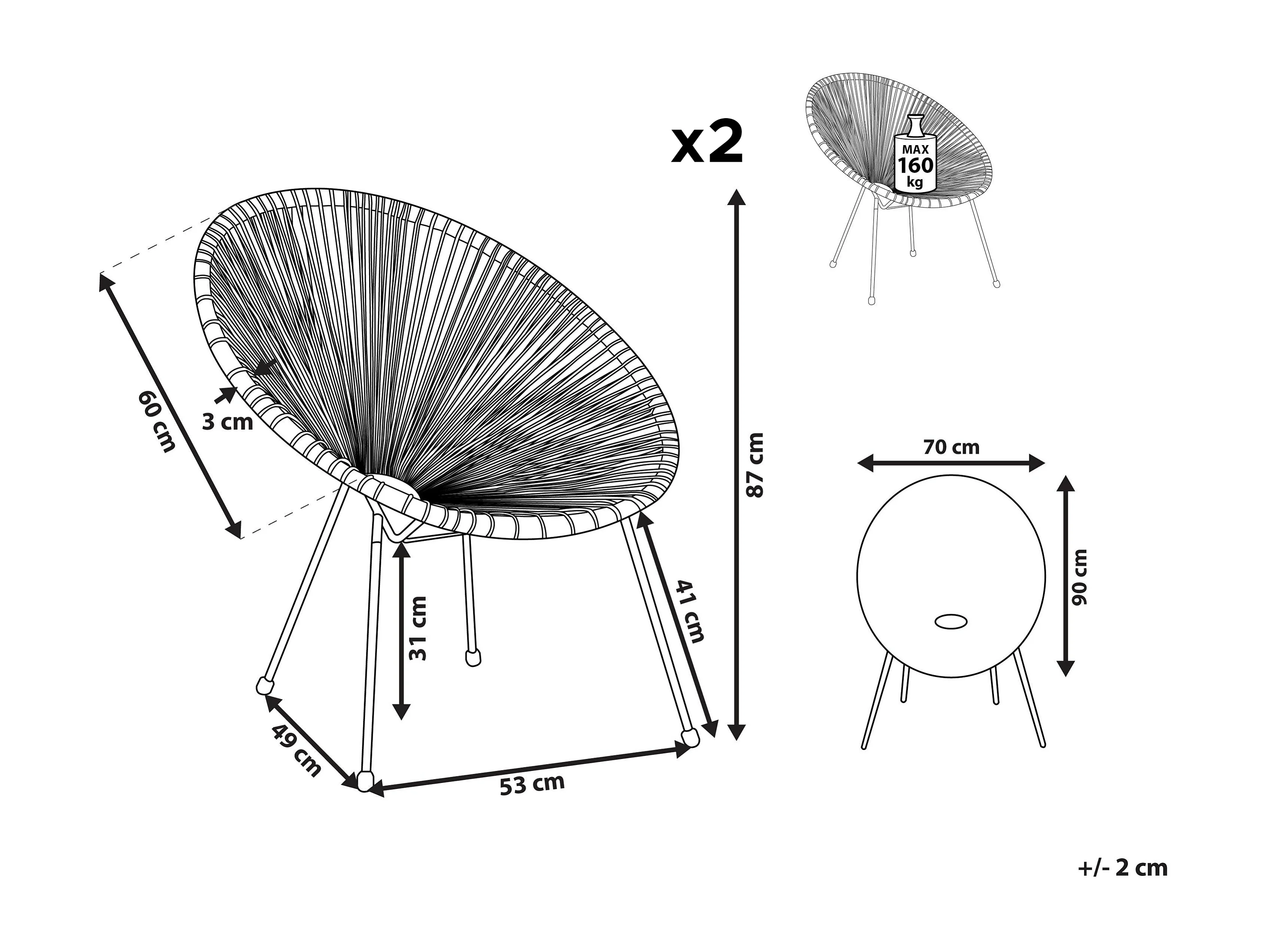 Conjunto de 2 cadeiras de jardim ACAPULCO II Azul