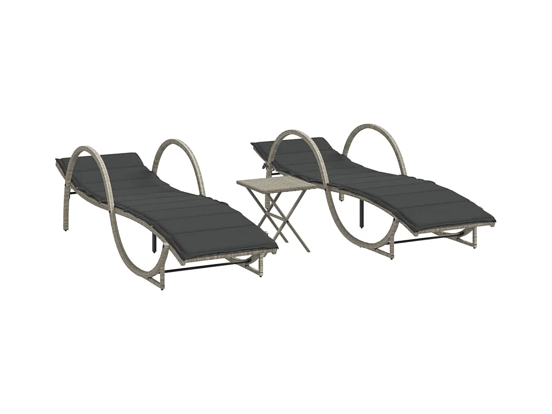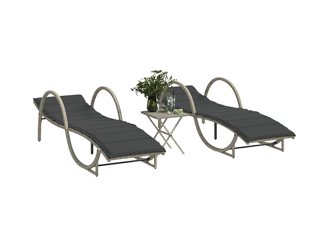 Conjunto de 2 cadeiras de praia com mesa de resina tecida cinza claro