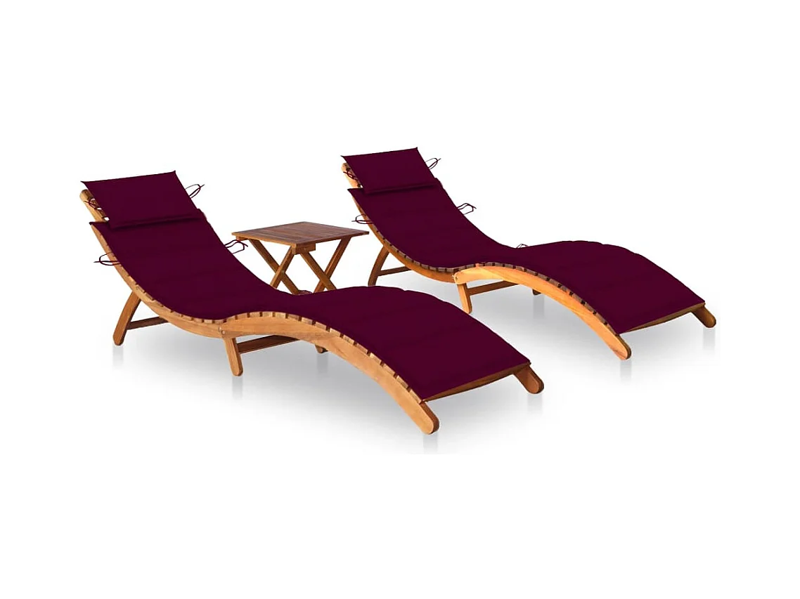 Conjunto de 2 cadeiras de praia com mesa e almofadas em Acácia Maciça