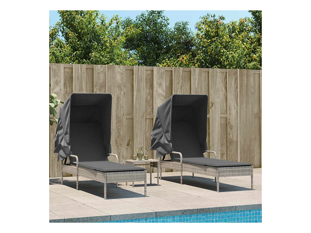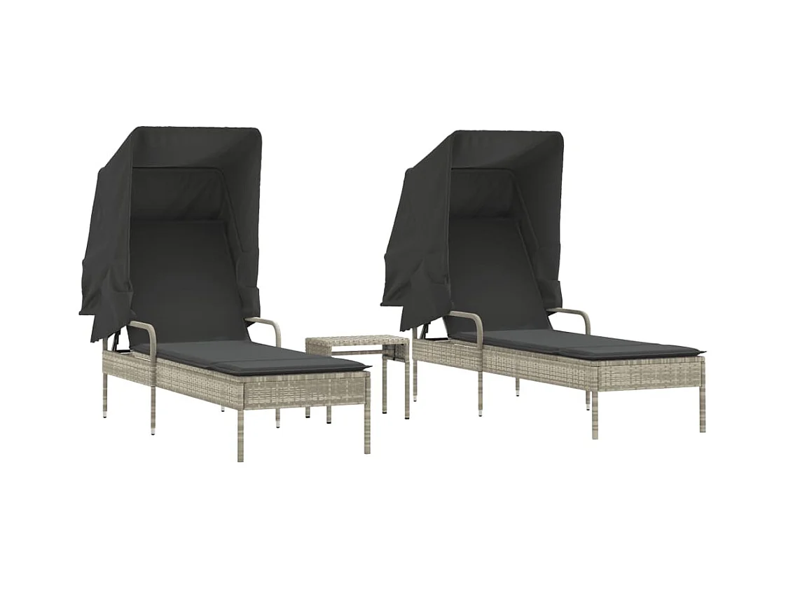 Conjunto de 2 cadeiras de praia com toldo e mesa de vime cinza claro