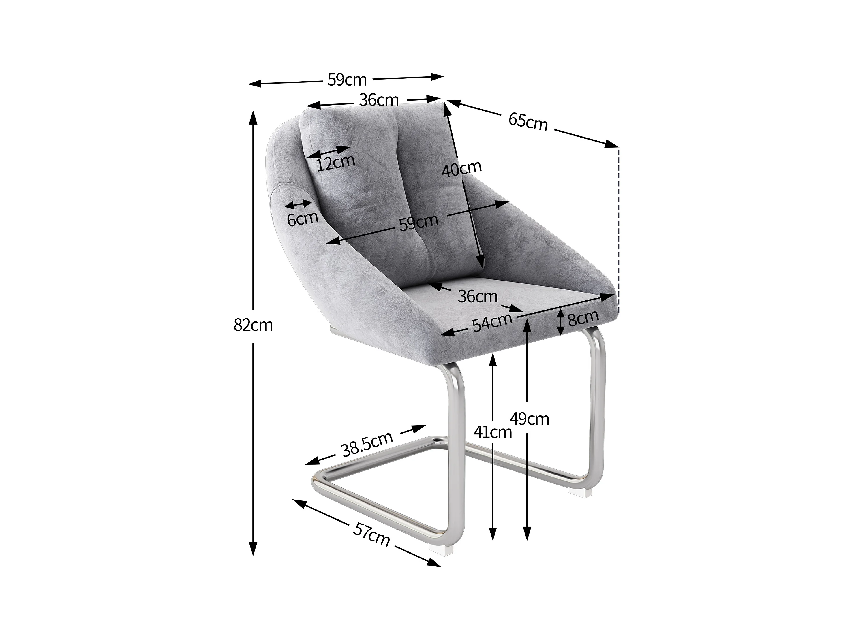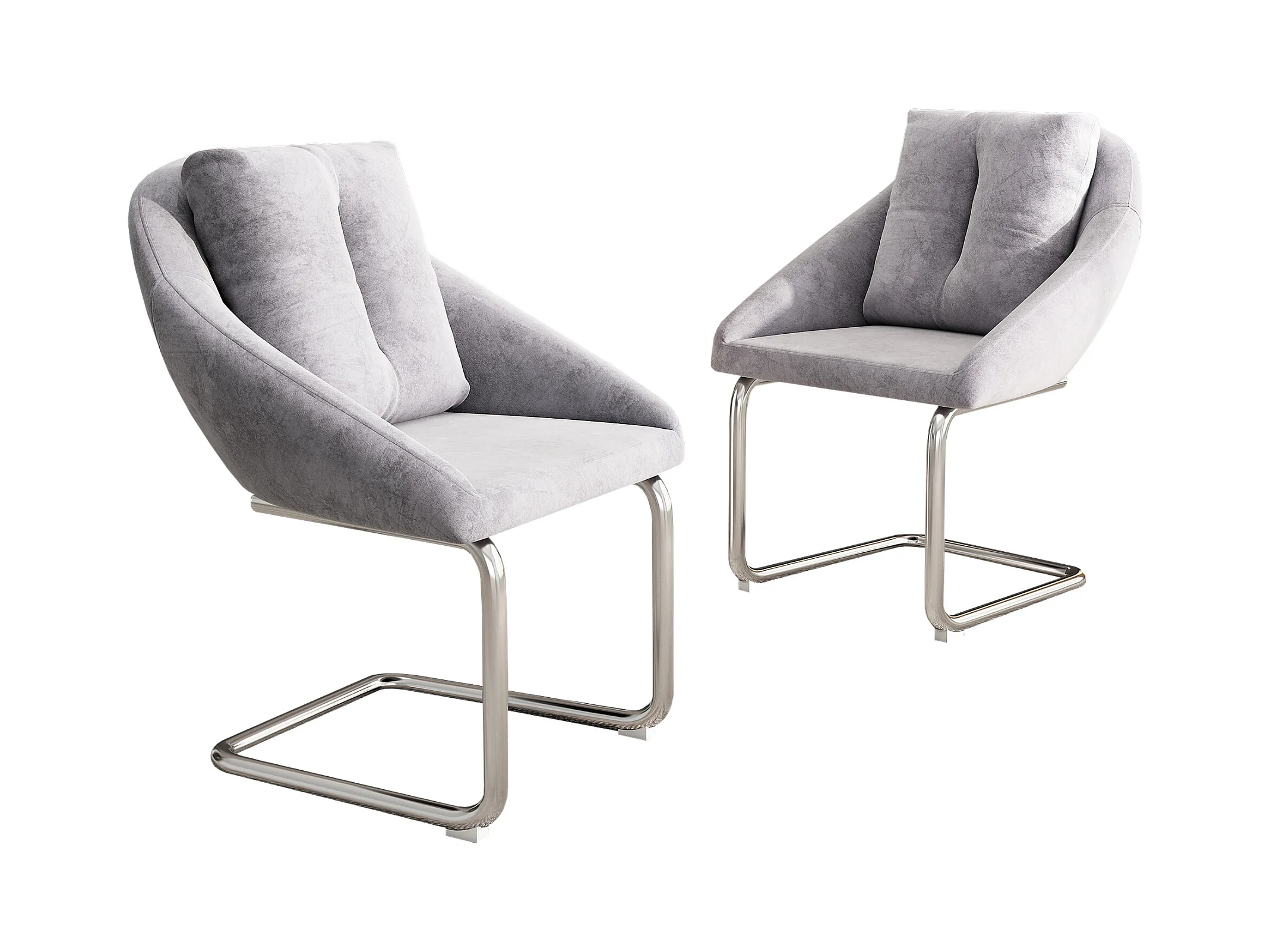 Conjunto de 2 cadeiras de veludo - 82 x 57 x 54 cm - com almofadas - Cadeira giratória de luxo para sala de estar e quarto - Pernas arqueadas - Cinza