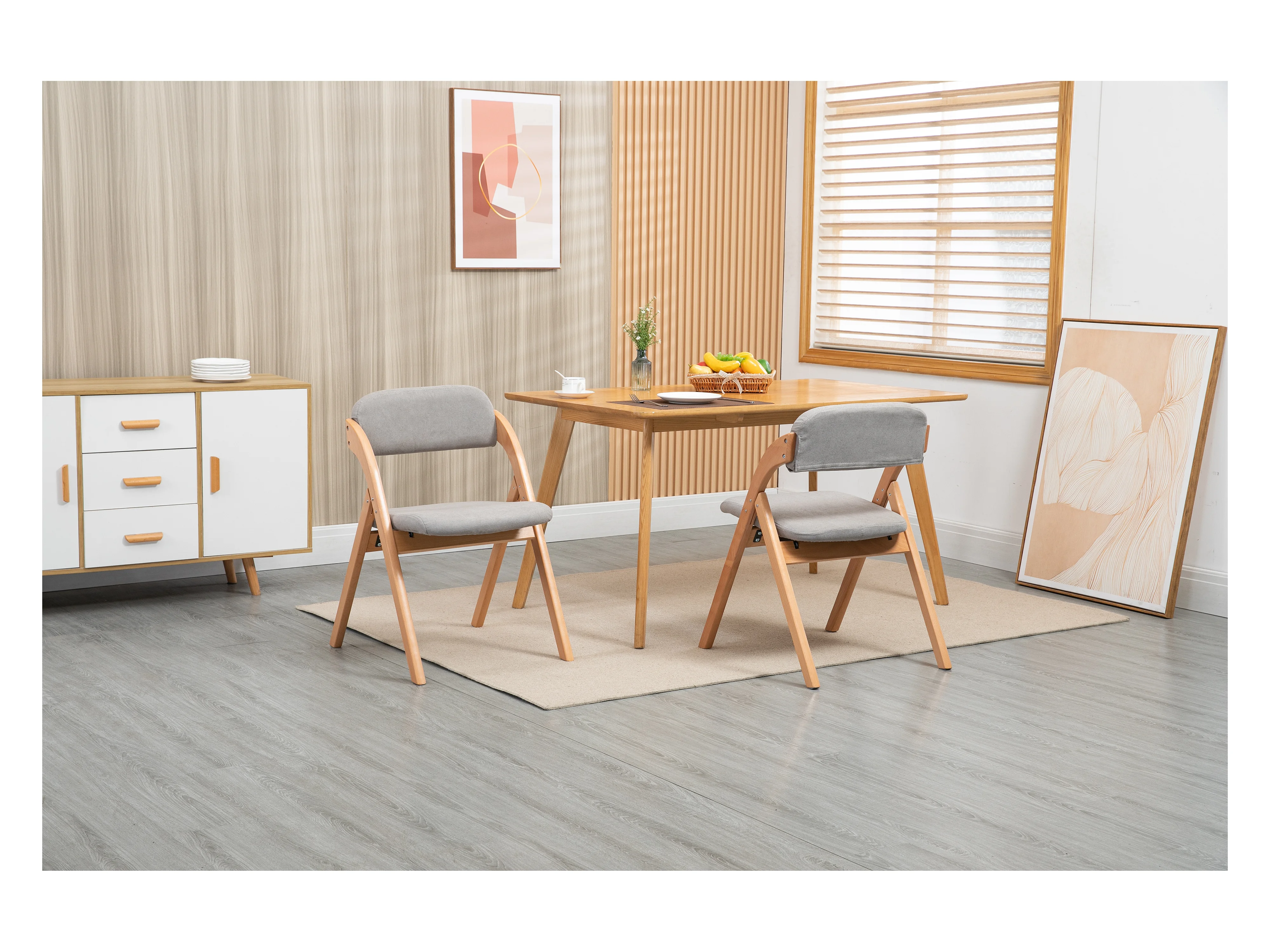 Conjunto de 2 cadeiras dobráveis de madeira maciça com assento acolchoado e capa removível, dobrável para cozinha cinza