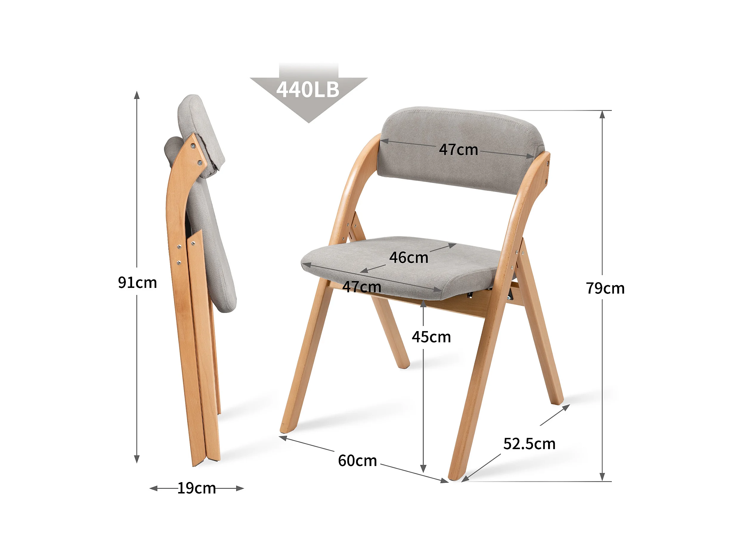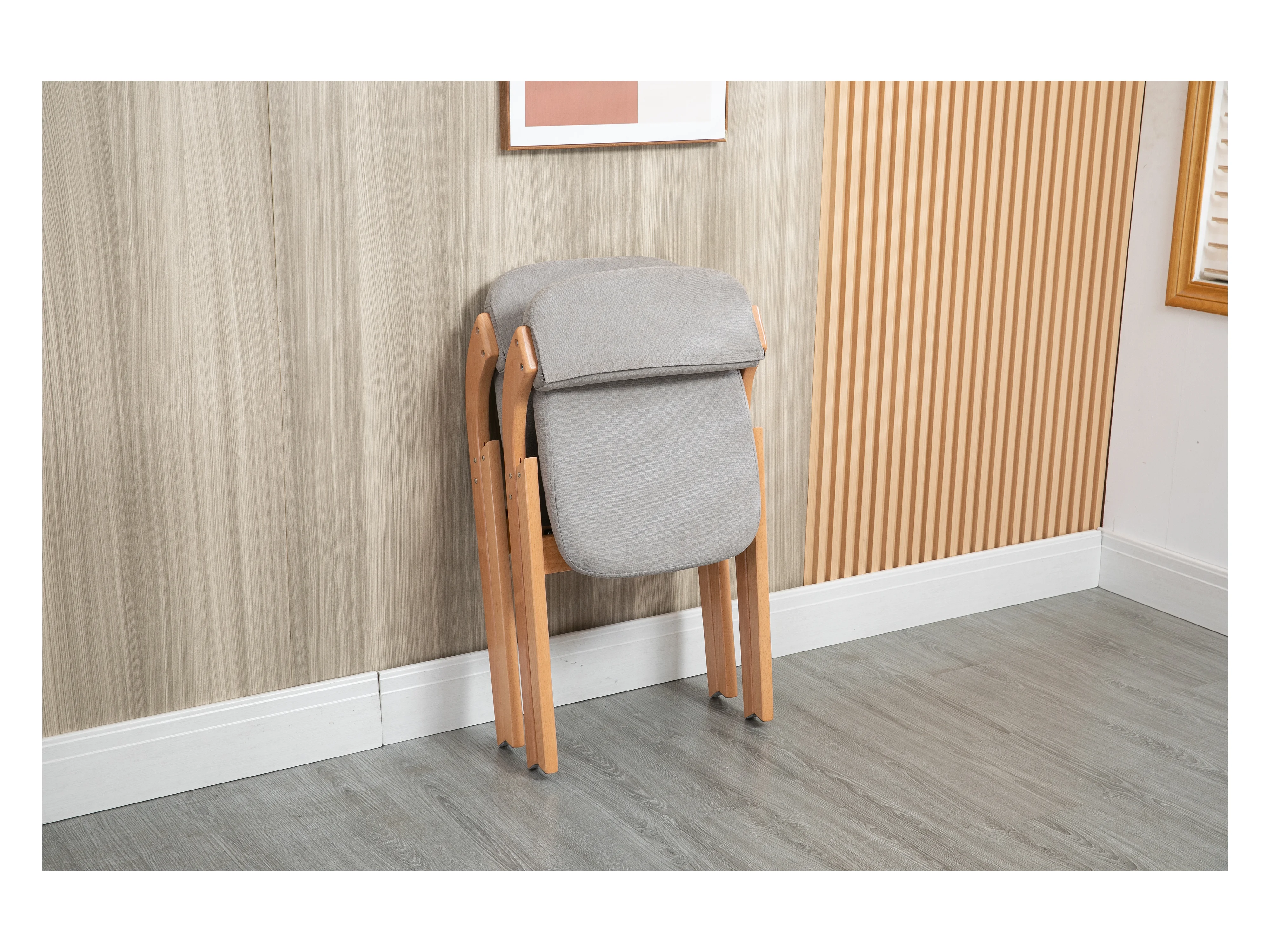 Conjunto de 2 cadeiras dobráveis de madeira com almofada, assento largo, conforto, cozinha, escritório, casamento, cinza