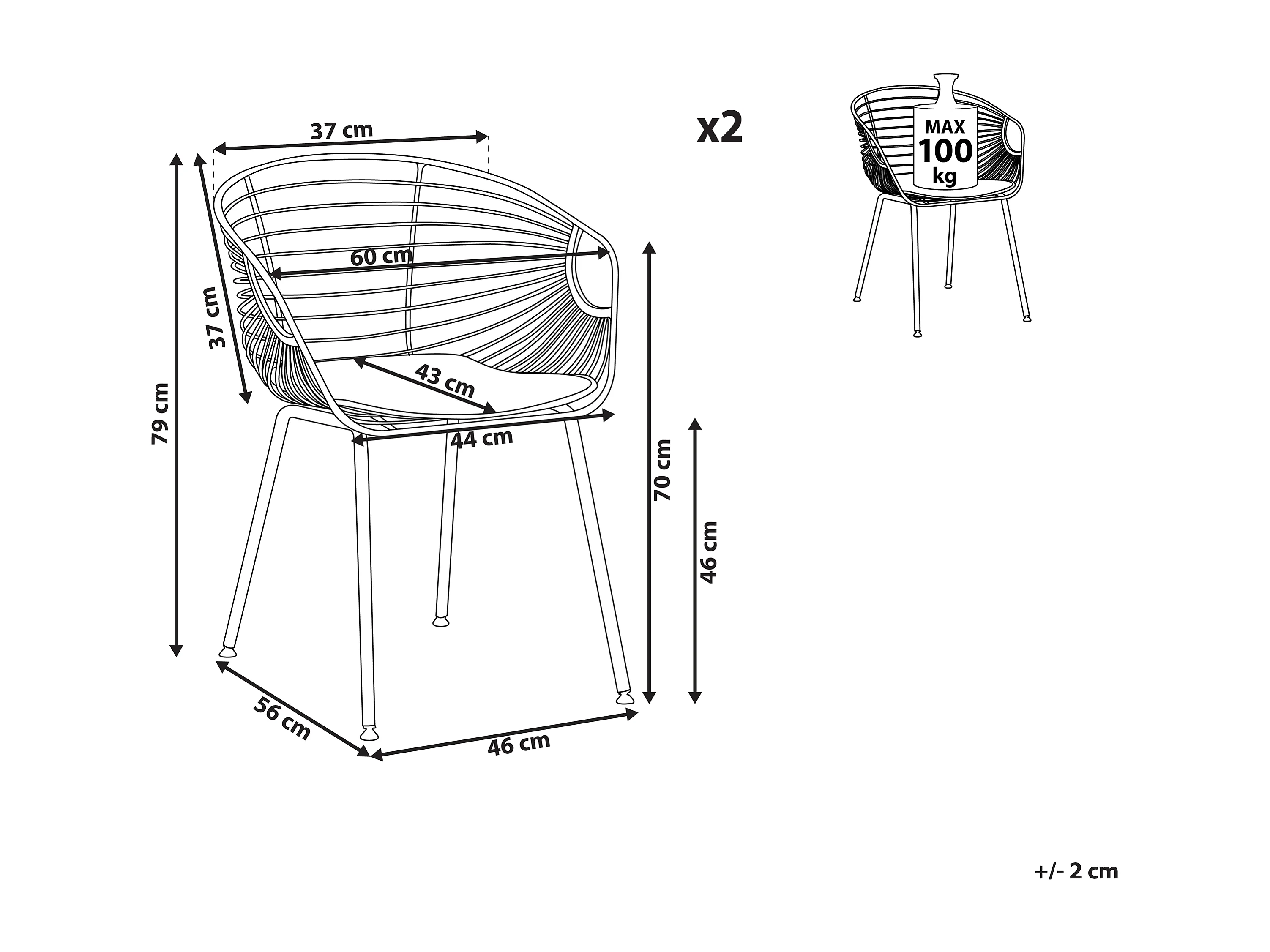 Conjunto de 2 cadeiras de jantar HOBACK Metal Dourado
