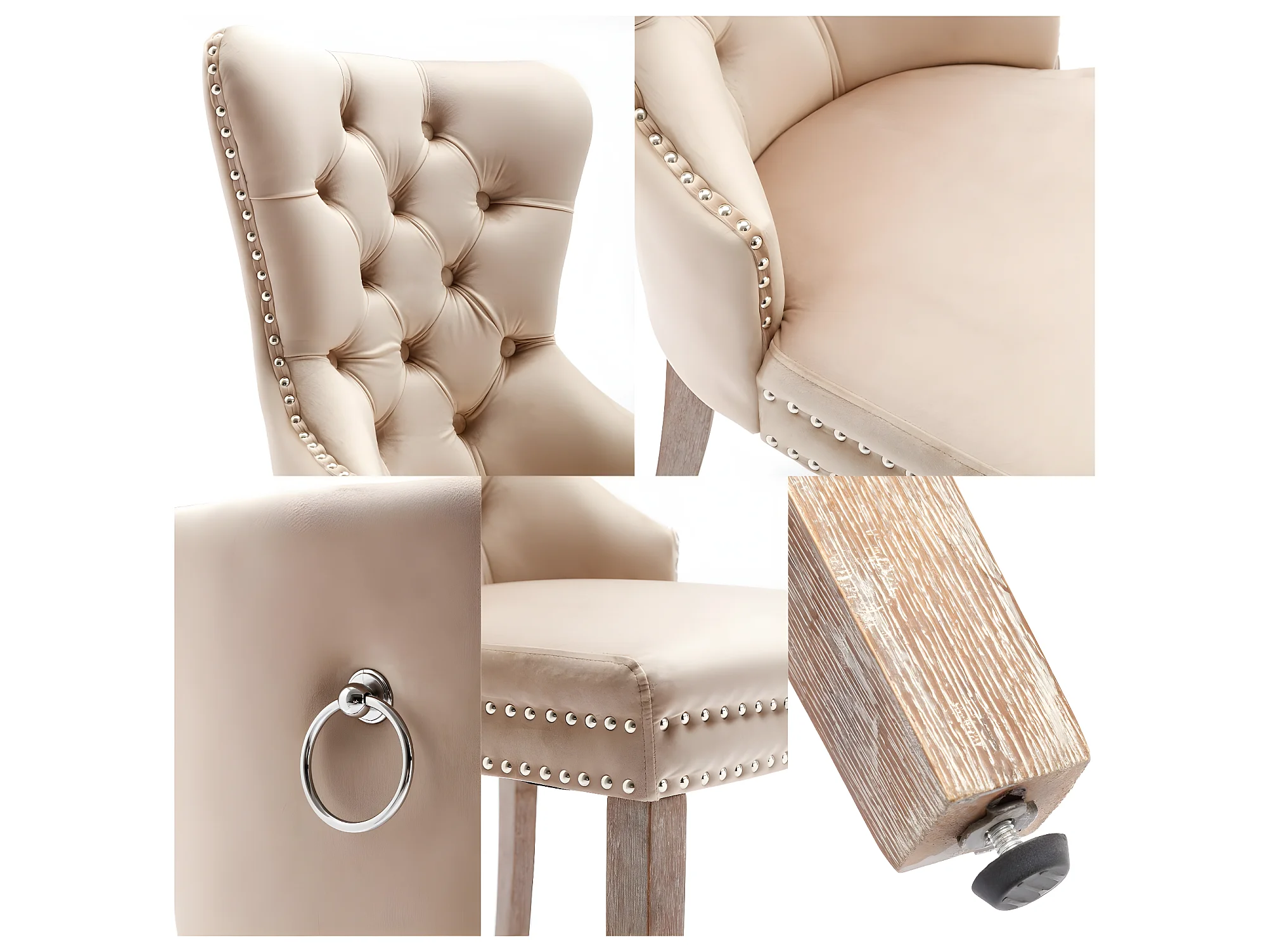 Conjunto de 2 cadeiras em veludo - pernas em madeira maciça - bege
