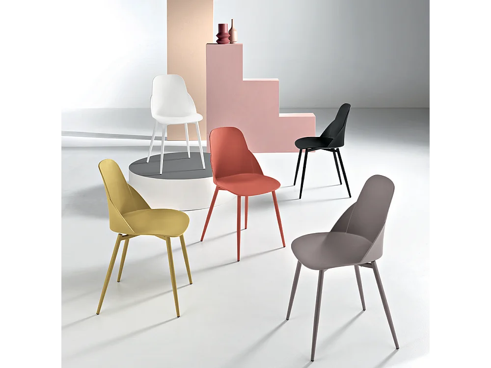 Conjunto de 2 cadeiras modernas brancas "Solinea" em polipropileno com estrutura metálica cm 44x51 82h